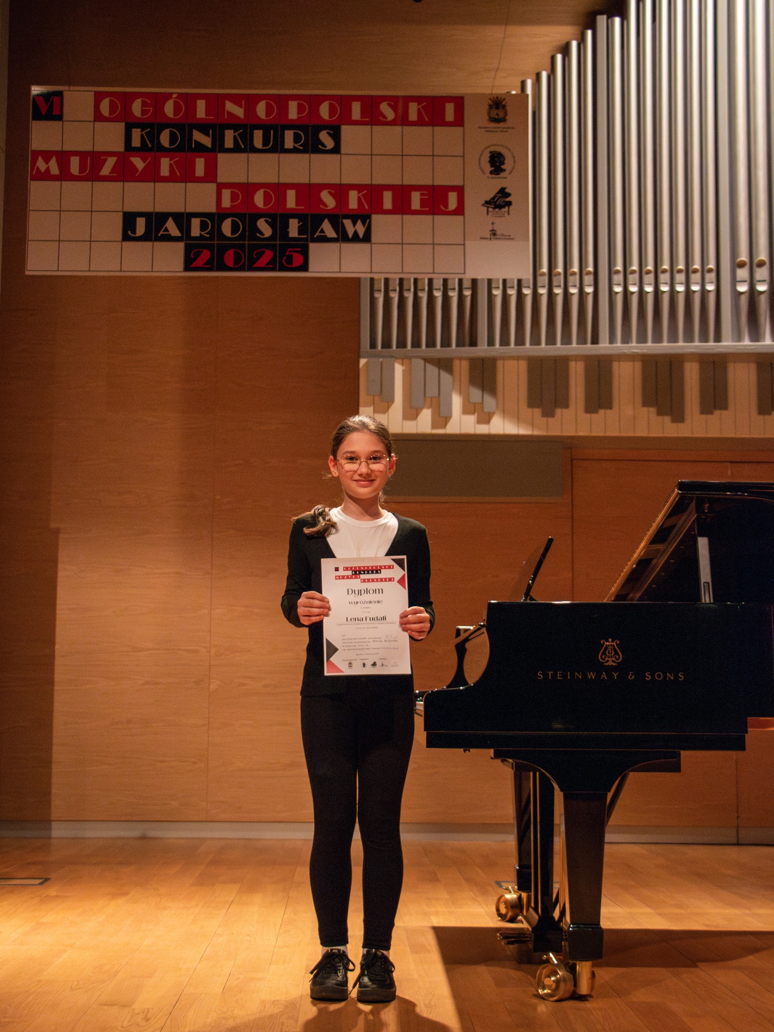 Lena Fudali z klasy fortepianu mgr Anny Chlebuś otrzymała wyróżnienie w VI Ogólnopolskim Konkursie Muzyki Polskiej 25 kwietnia 2025 r.