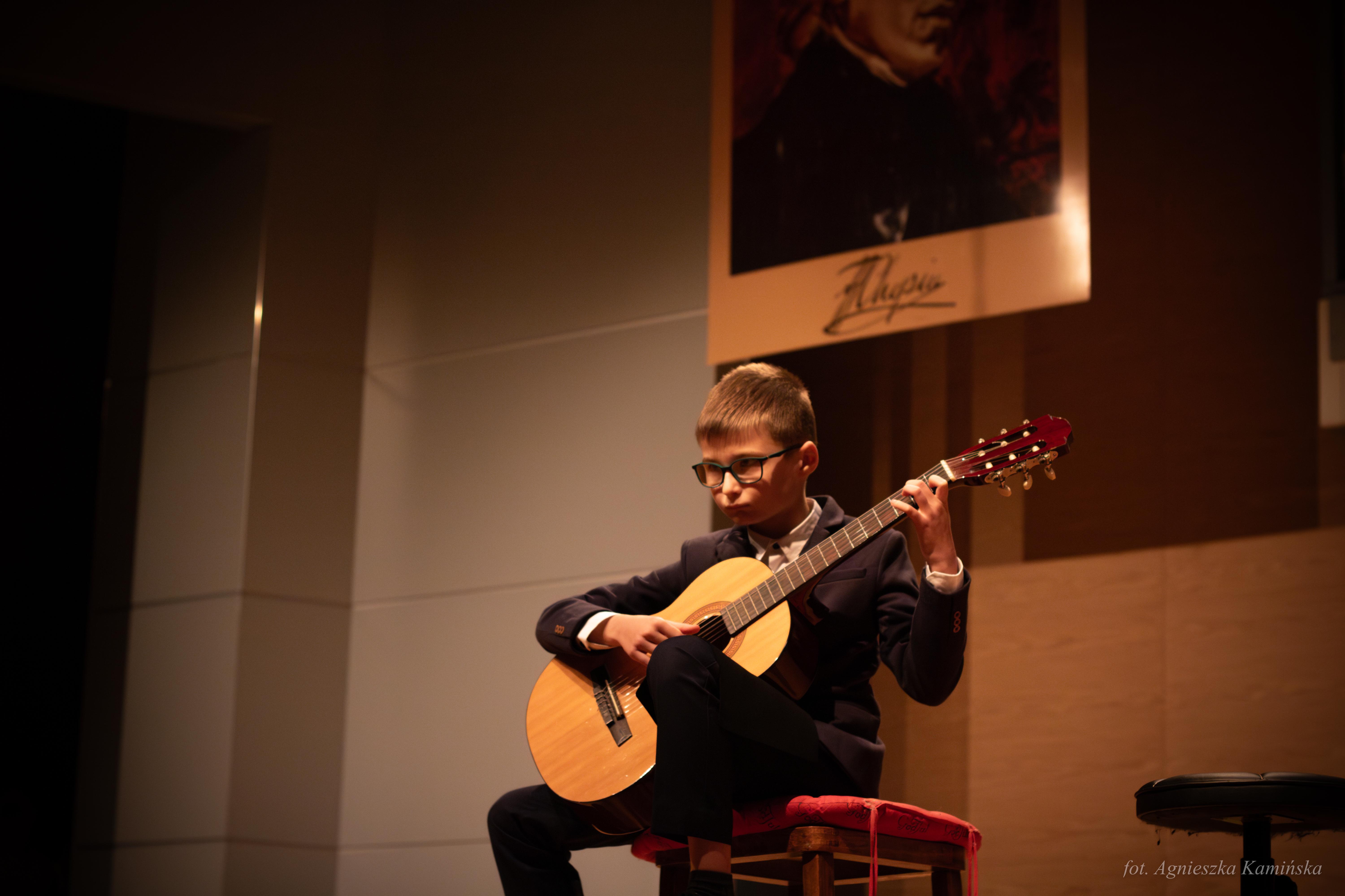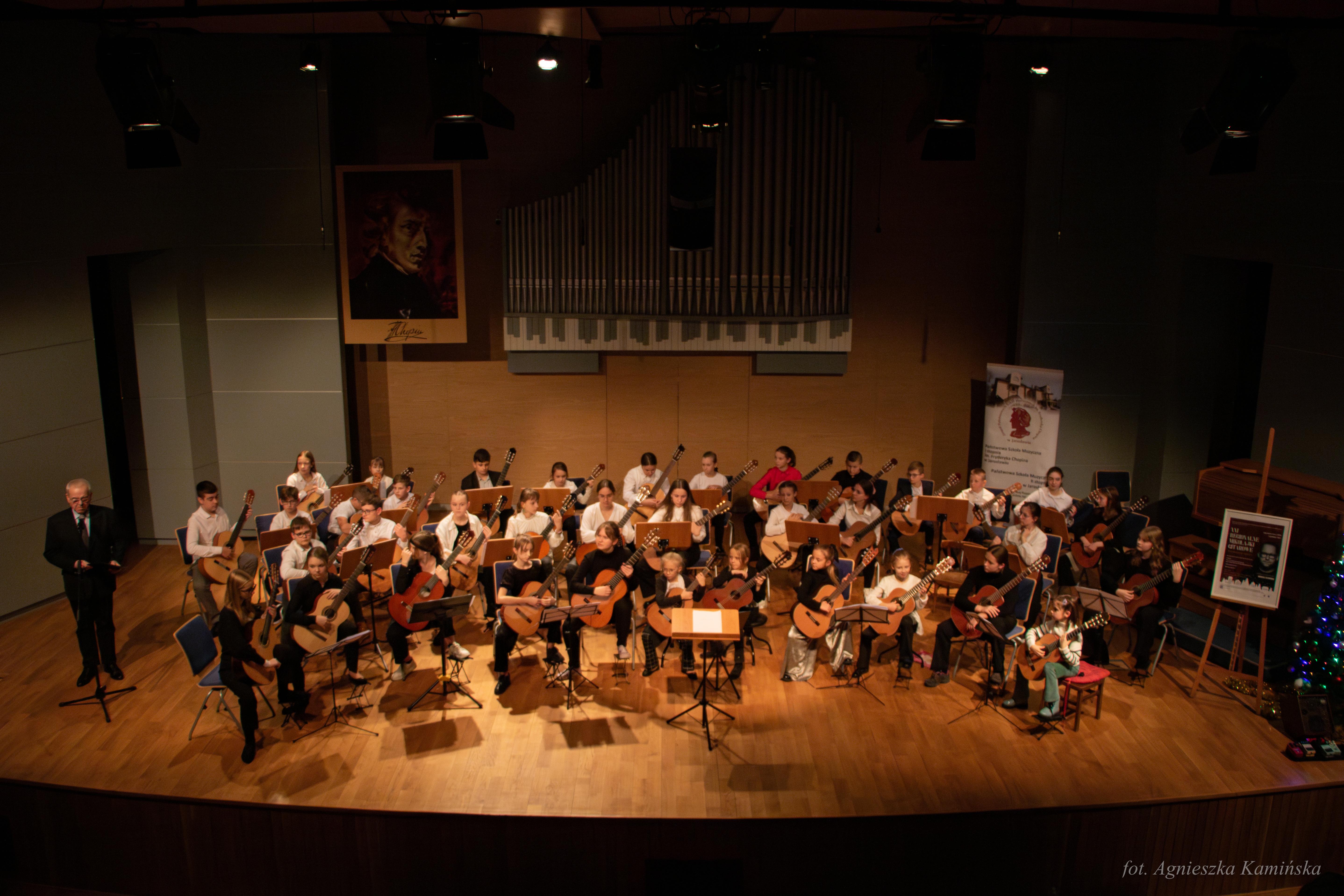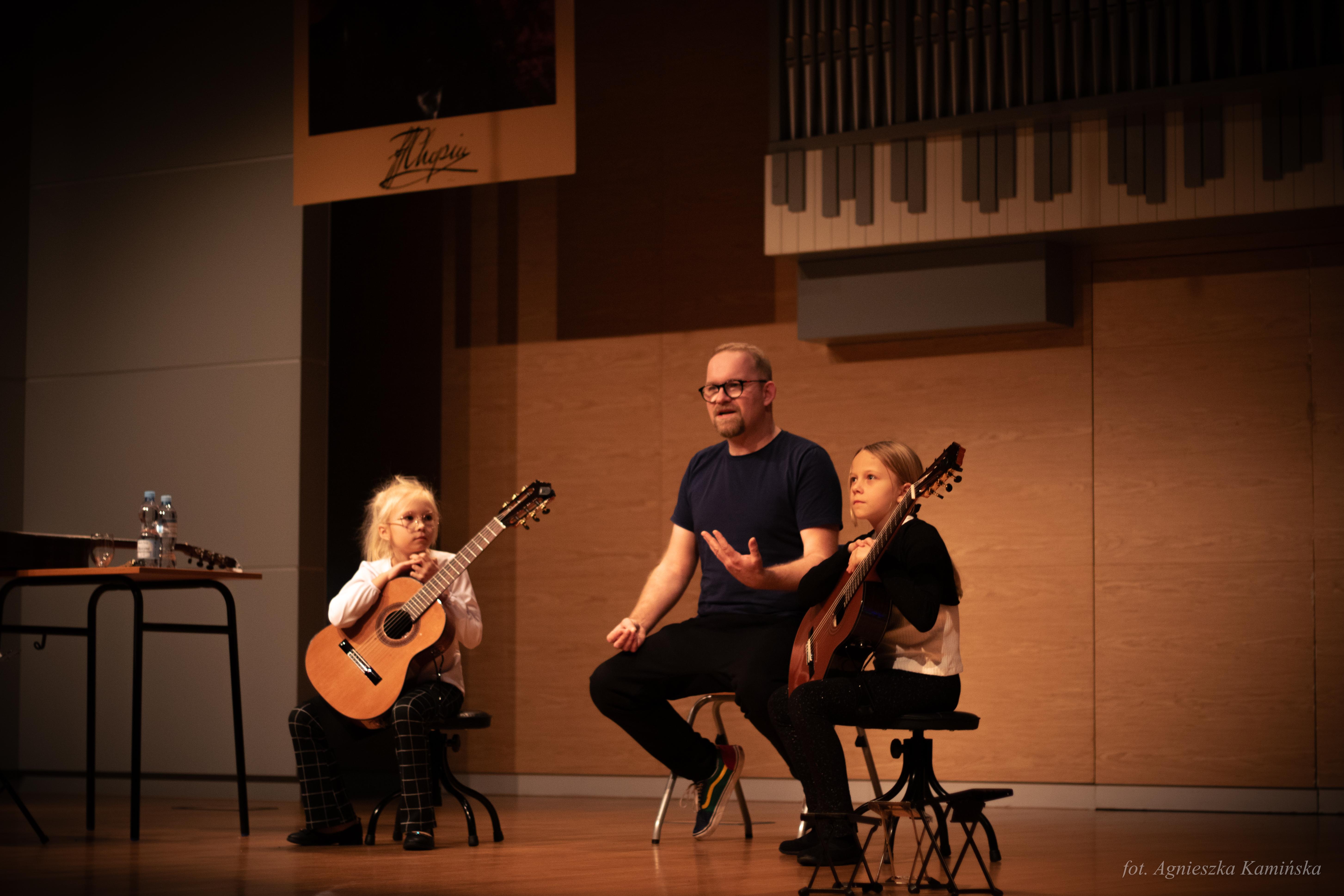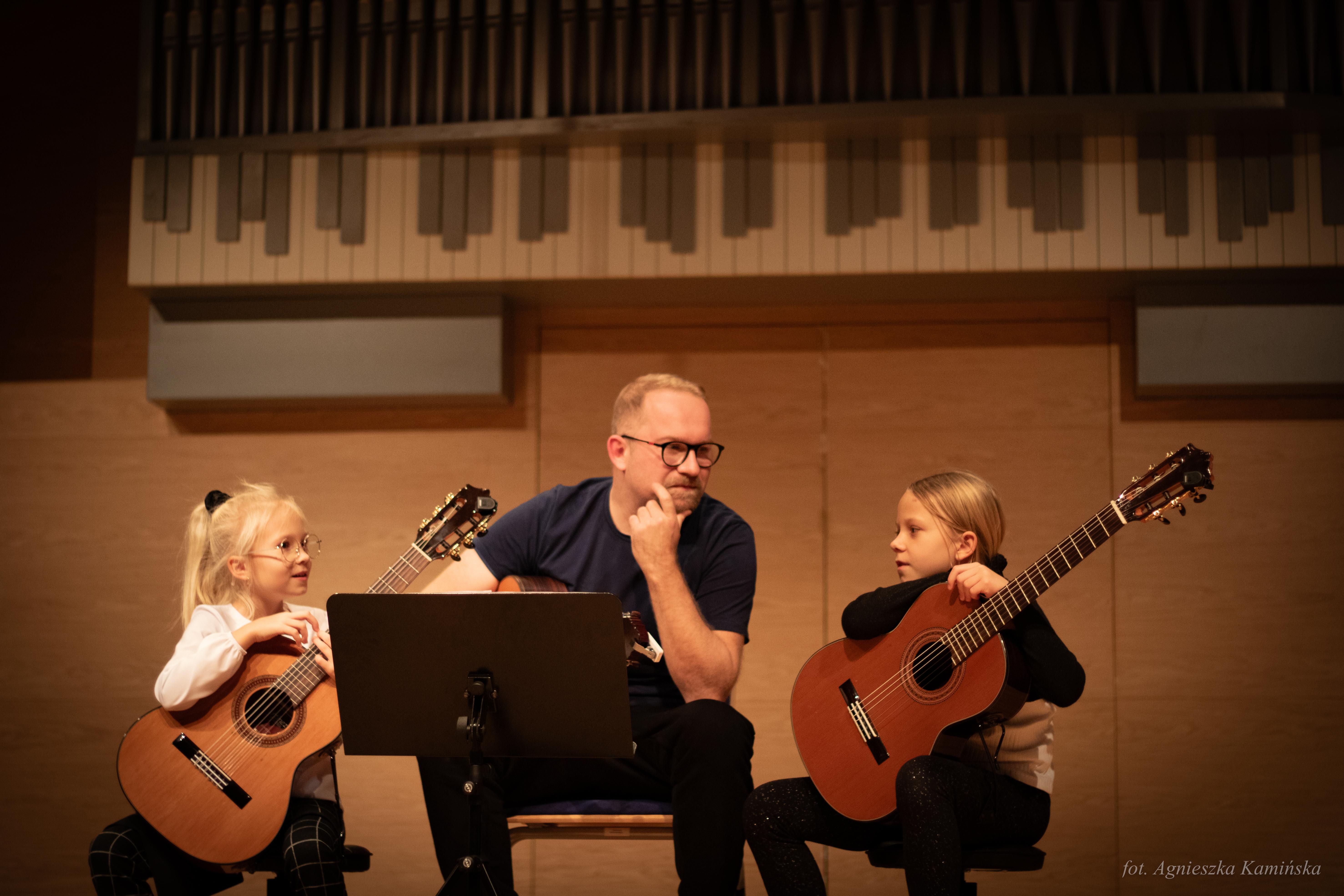 1 grudnia 2023 roku w naszej szkole, już po raz 21 odbyły się Regionalne Mikołajki Gitarowe, w czasie których gościliśmy uczniów i nauczycieli z podkarpackich szkół muzycznych I stopnia. Gościem specjalnym tegorocznej edycji był pan Andrzej Olewiński - gitarzysta klasyczny, akustyczny, elektryczny, udzielający się zarówno na gruncie muzyki poważnej, jak i rozrywkowej, muzyk sesyjny, nauczyciel ZPSM im. F. Chopina w Warszawie oraz wykładowca UMFC, który wysłuchał prezentacji uczniów, a następnie opowiedział o wpływie gry w zespole instrumentalnym na rozwój młodego gitarzysty i poprowadził lekcje mistrzowskie.