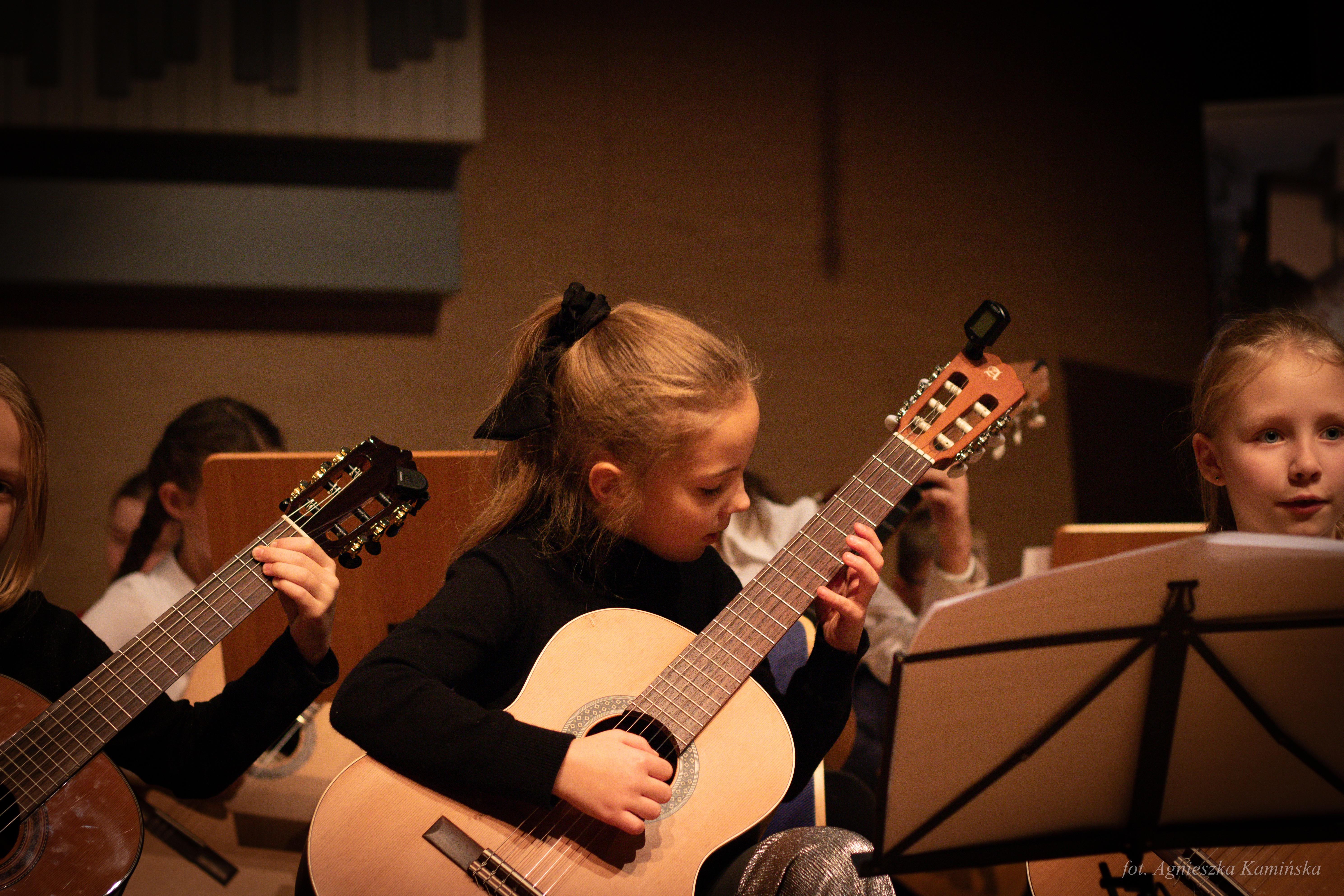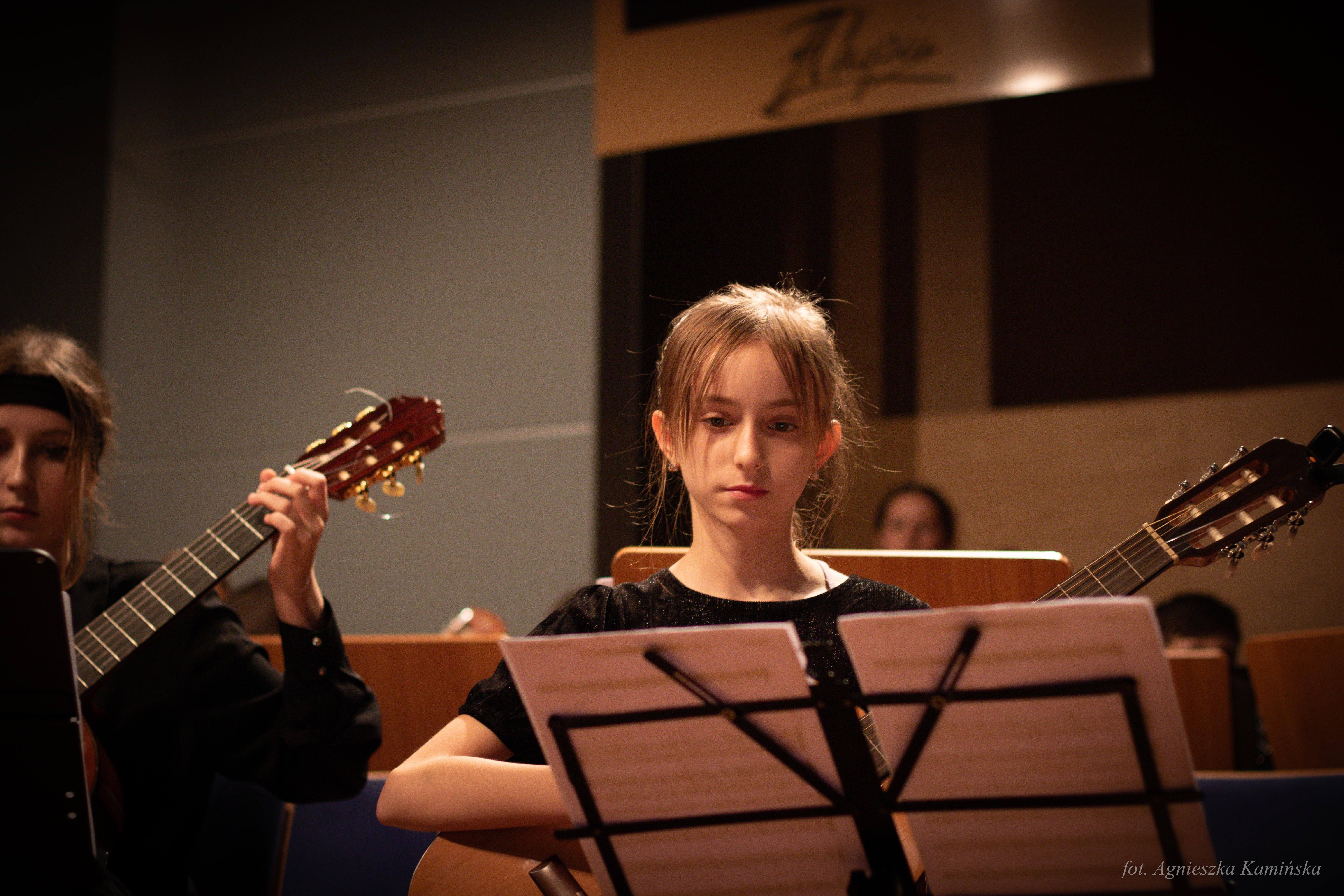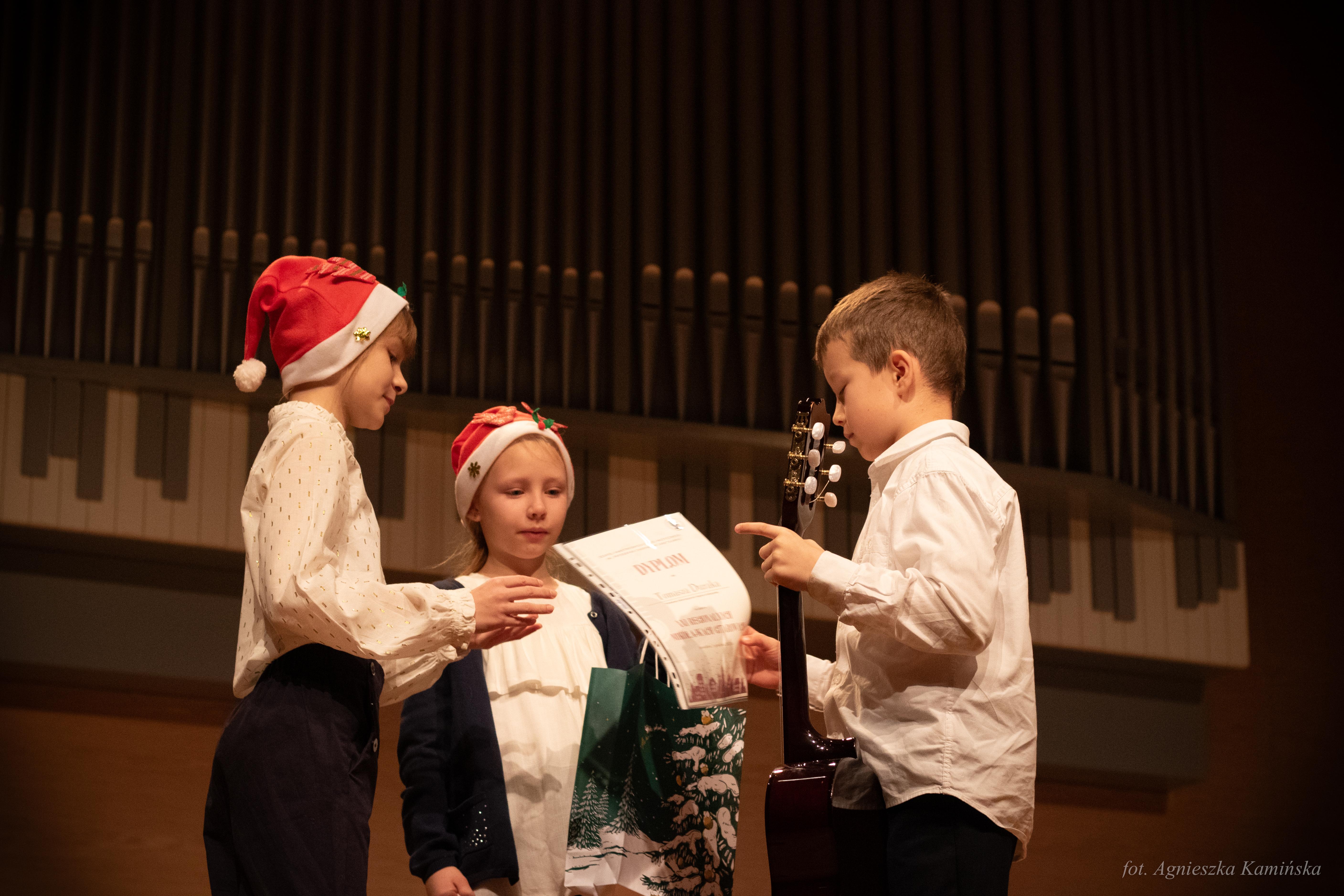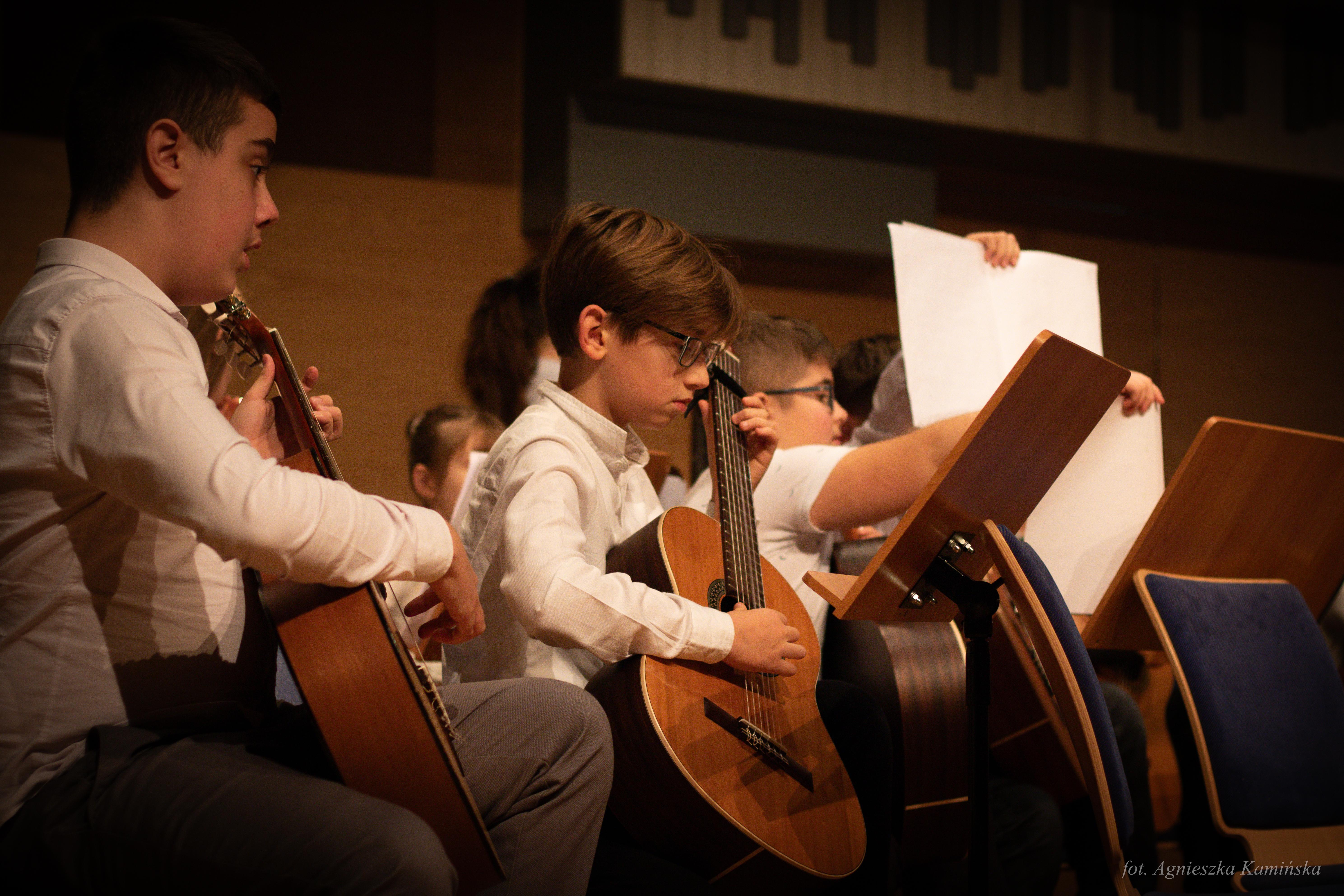 1 grudnia 2023 roku w naszej szkole, już po raz 21 odbyły się Regionalne Mikołajki Gitarowe, w czasie których gościliśmy uczniów i nauczycieli z podkarpackich szkół muzycznych I stopnia. Gościem specjalnym tegorocznej edycji był pan Andrzej Olewiński - gitarzysta klasyczny, akustyczny, elektryczny, udzielający się zarówno na gruncie muzyki poważnej, jak i rozrywkowej, muzyk sesyjny, nauczyciel ZPSM im. F. Chopina w Warszawie oraz wykładowca UMFC, który wysłuchał prezentacji uczniów, a następnie opowiedział o wpływie gry w zespole instrumentalnym na rozwój młodego gitarzysty i poprowadził lekcje mistrzowskie.