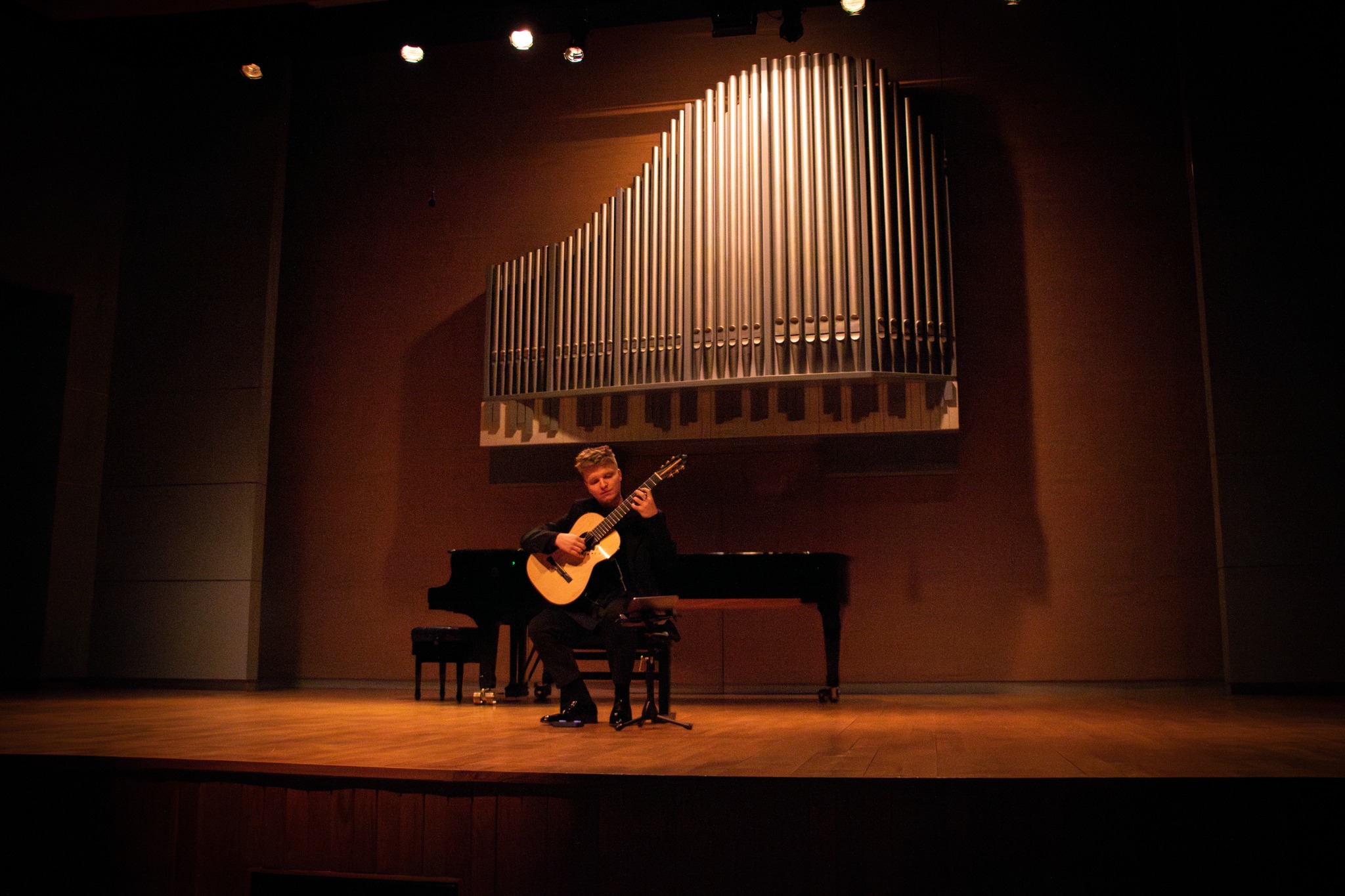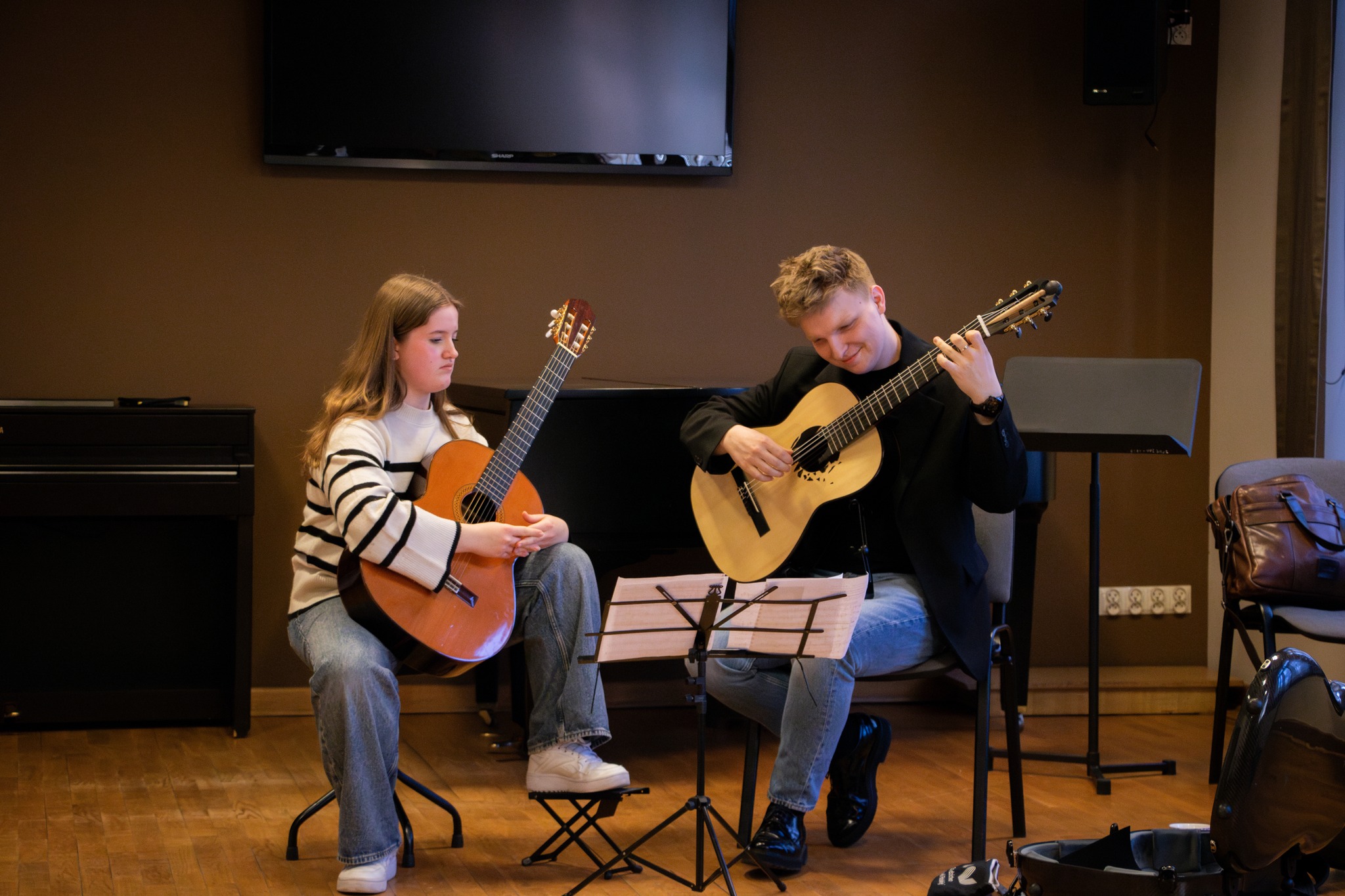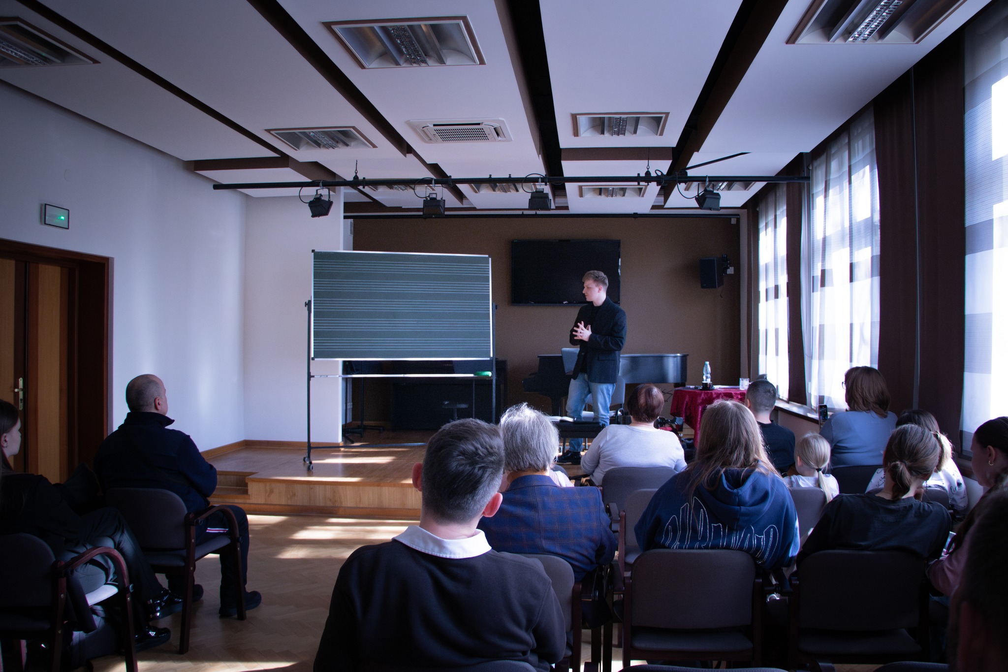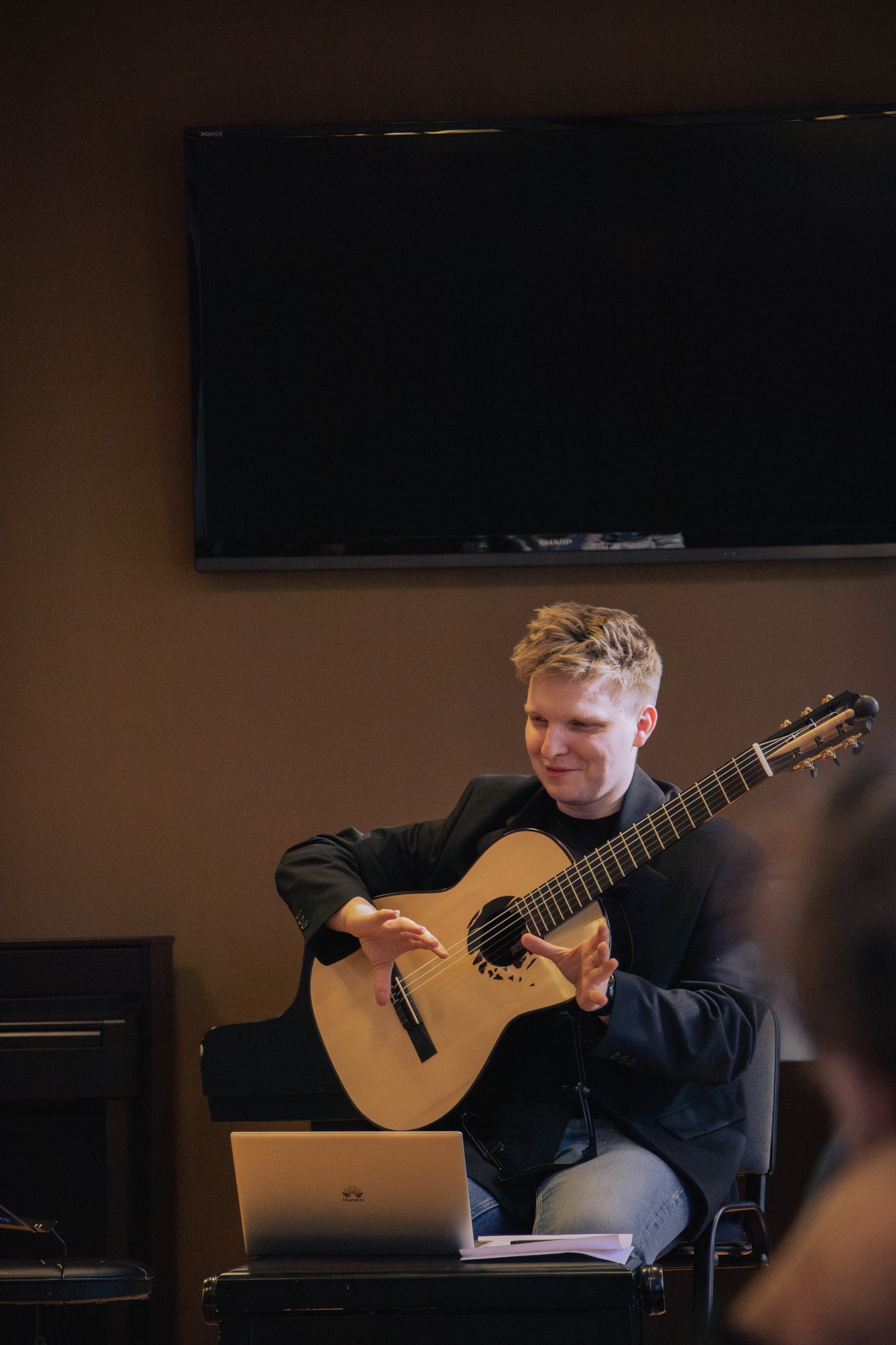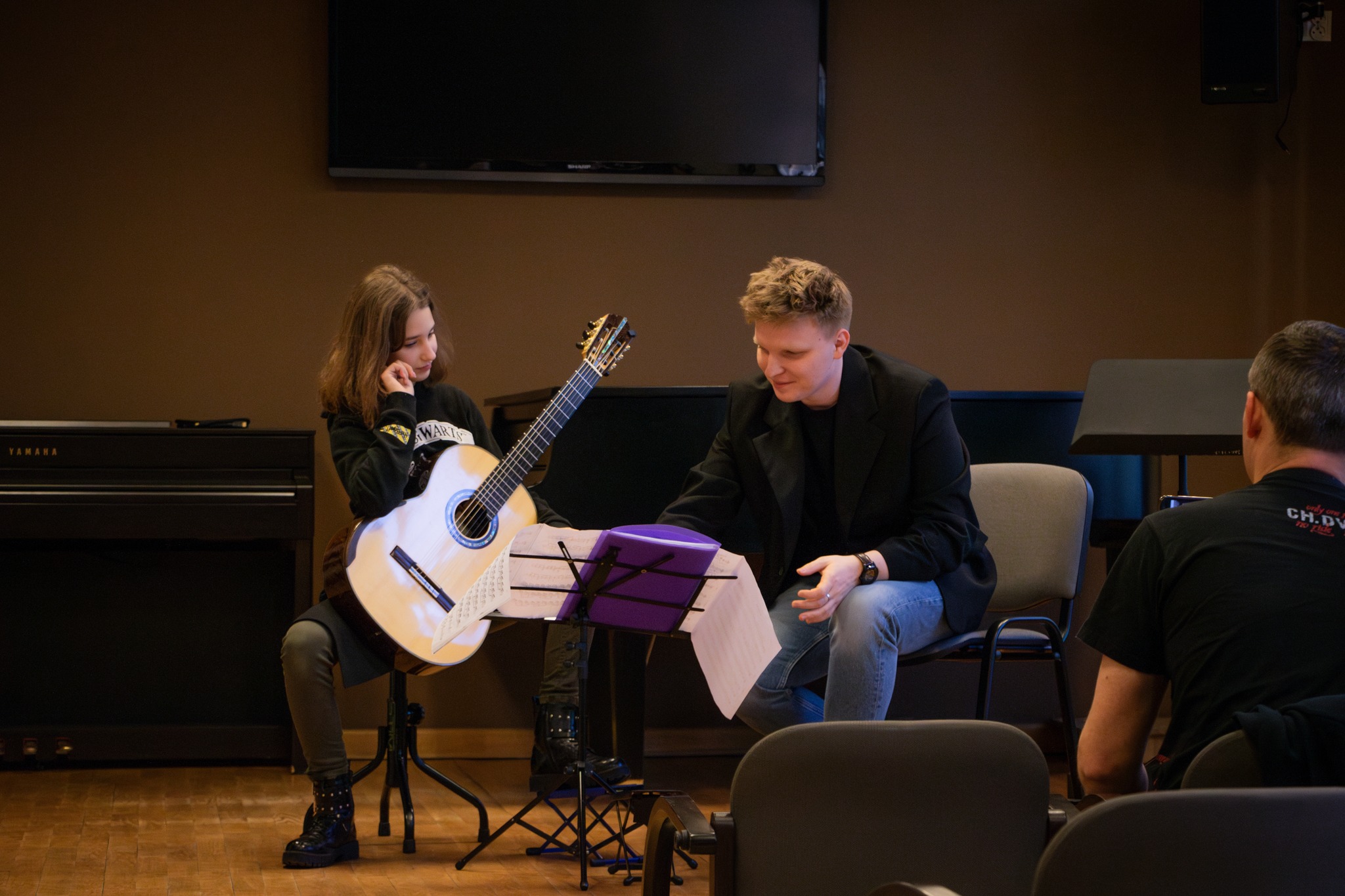 W dniach 20-21 marca 2025 roku w Zespole Państwowych Szkół Muzycznych im. Fryderyka Chopina w Jarosławiu odbyły się Regionalne Warsztaty Gitarowe dla nauczycieli i uczniów szkół muzycznych I i II stopnia, które poprowadził mgr Mateusz Kowalski, wykładowca Uniwersytetu Muzycznego Fryderyka Chopina w Warszawie, jeden z najbardziej cenionych polskich gitarzystów klasycznych młodego pokolenia. Podczas warsztatów Mateusz Kowalski przeprowadził aż 16 lekcji otwartych z uczniami szkół muzycznych z całego Podkarpacia, każda z nich była intensywną, indywidualnie dostosowaną pracą nad wybranym repertuarem. W czasie zajęć uczestnicy doskonalili swoją technikę gry, ucząc się skutecznych metod opanowania wybranych zagadnień technicznych, a także zgłębiali sztukę świadomego budowania interpretacji w oparciu o znajomość stylu epoki i charakter danej kompozycji. Warsztaty były cennym doświadczeniem nie tylko dla aktywnych uczestników, ale również dla obserwatorów, którzy mogli śledzić proces pracy nad utworem i czerpać inspirację do własnej pracy. Oprócz lekcji otwartych Mateusz Kowalski wygłosił dwa niezwykle interesujące wykłady nt.: „Metod poznawania gryfu w kontekście szkół historycznych” oraz „Elementów wirtuozowskich w twórczości polskich mistrzów gitary czasów Wielkiej Emigracji”. Oba wykłady spotkały się z dużym zainteresowaniem słuchaczy i z pewnością dla wielu z nich stały się impulsem do dalszego zgłębiania wiedzy i rozwijania umiejętności technicznych w oparciu o szkoły wirtuozów, takich jak Fernando Sor czy Francisco Tarrega. Niezwykłą atrakcją i prawdziwą muzyczną ucztą był koncert Mateusza Kowalskiego, który odbył się wieczorem 20 marca w sali koncertowej ZPSM w Jarosławiu. Było to podsumowanie pierwszego dnia warsztatów, a zarazem wyjątkowa okazja, by usłyszeć mistrza w szerokim repertuarze obejmującym zarówno dzieła klasyczne, jak i utwory z pogranicza tanga, jazzu i a nawet muzyki country. Jego występ zachwycił publiczność, ukazując pełnię możliwości gitary klasycznej oraz ogromną ekspresję artystyczną wykonawcy. Regionalne Warsztaty Gitarowe w Jarosławiu były wyjątkowym wydarzeniem dla społeczności gitarowej Podkarpacia. Dzięki lekcjom mistrzowskim, wykładom oraz koncertowi uczestnicy mieli okazję nie tylko poszerzyć wiedzę i podnieść swoje umiejętności, ale także zyskać nową perspektywę na sztukę gry na gitarze. Spotkanie z tak wybitnym muzykiem jak Mateusz Kowalski dostarczyło wielu inspiracji, a jego wskazówki na pewno zaowocują w przyszłości.