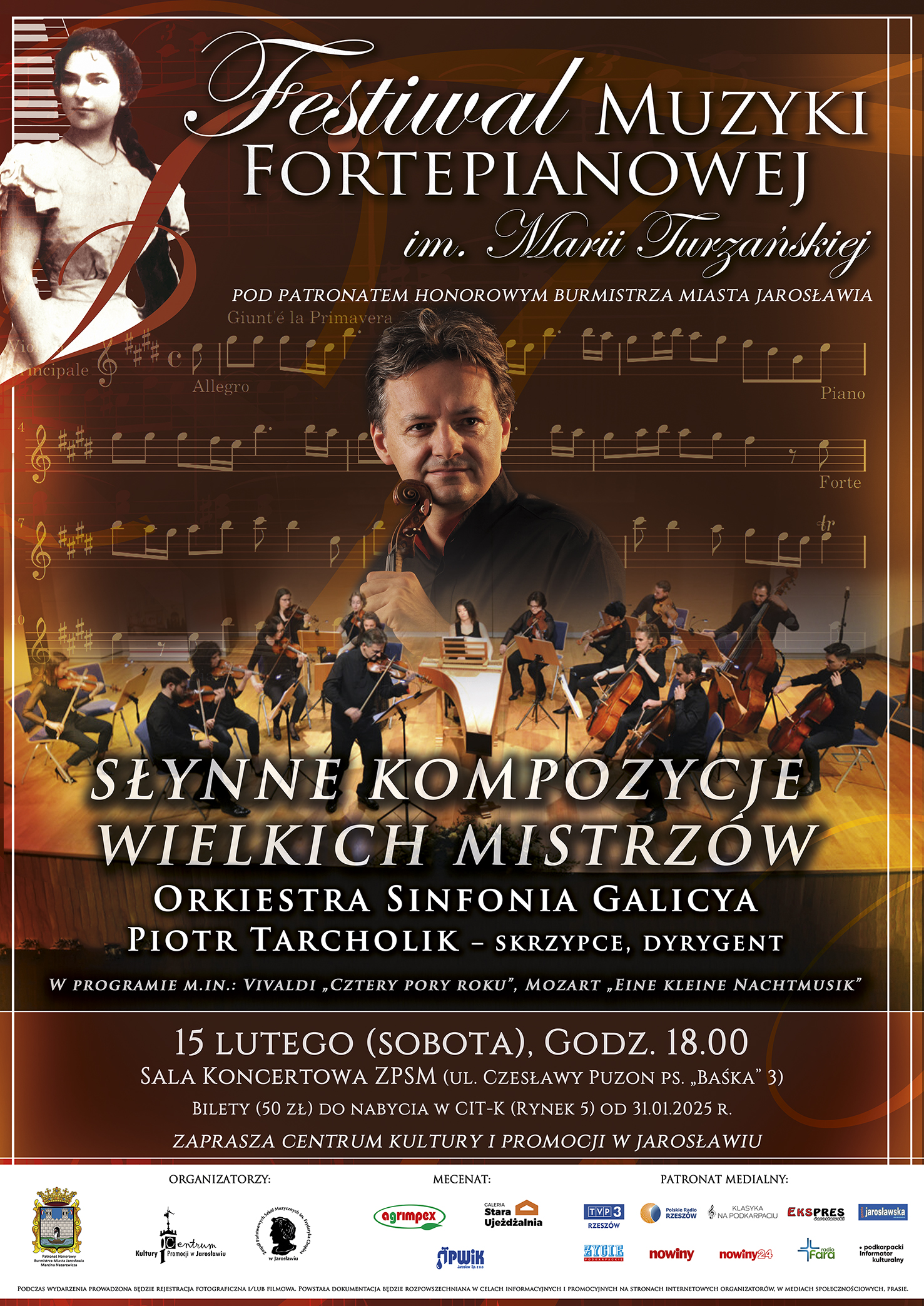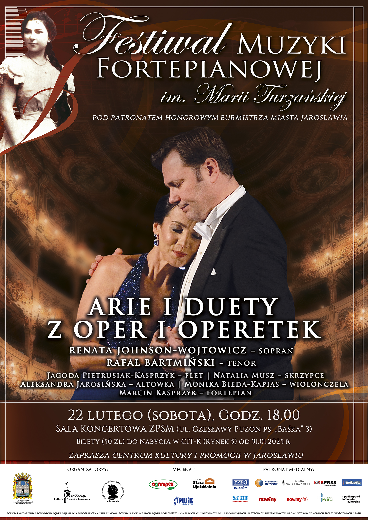 Serdecznie zapraszamy na Festiwal Muzyki Fortepianowej im. Marii Turzańskiej, który odbędzie się w terminie od 15 do 22 lutego 2025 r. Festiwal Muzyki Fortepianowej im. Marii Turzańskiej to wydarzenie muzyczne upamiętniające postać wybitnej pianistki związanej z Jarosławiem – Marii Turzańskiej, które rokrocznie gromadzi wirtuozów muzyki poważnej światowego formatu.