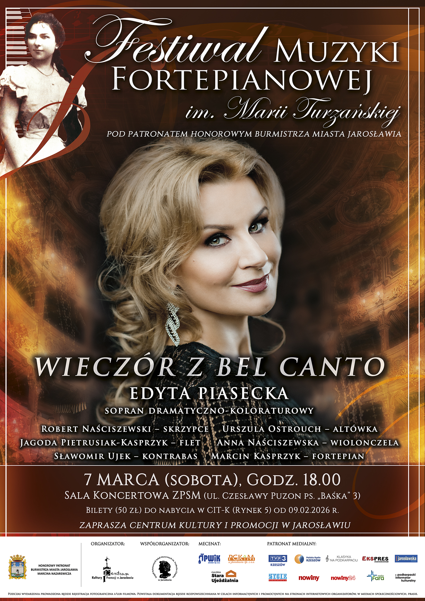 Zwieńczeniem Festiwalu stanie się koncert Edyty Piaseckiej z kwintetem „Wieczór z Bel Canto”, podczas którego Primadonna Opery Krakowskiej wykona najpiękniejsze arie operowe.