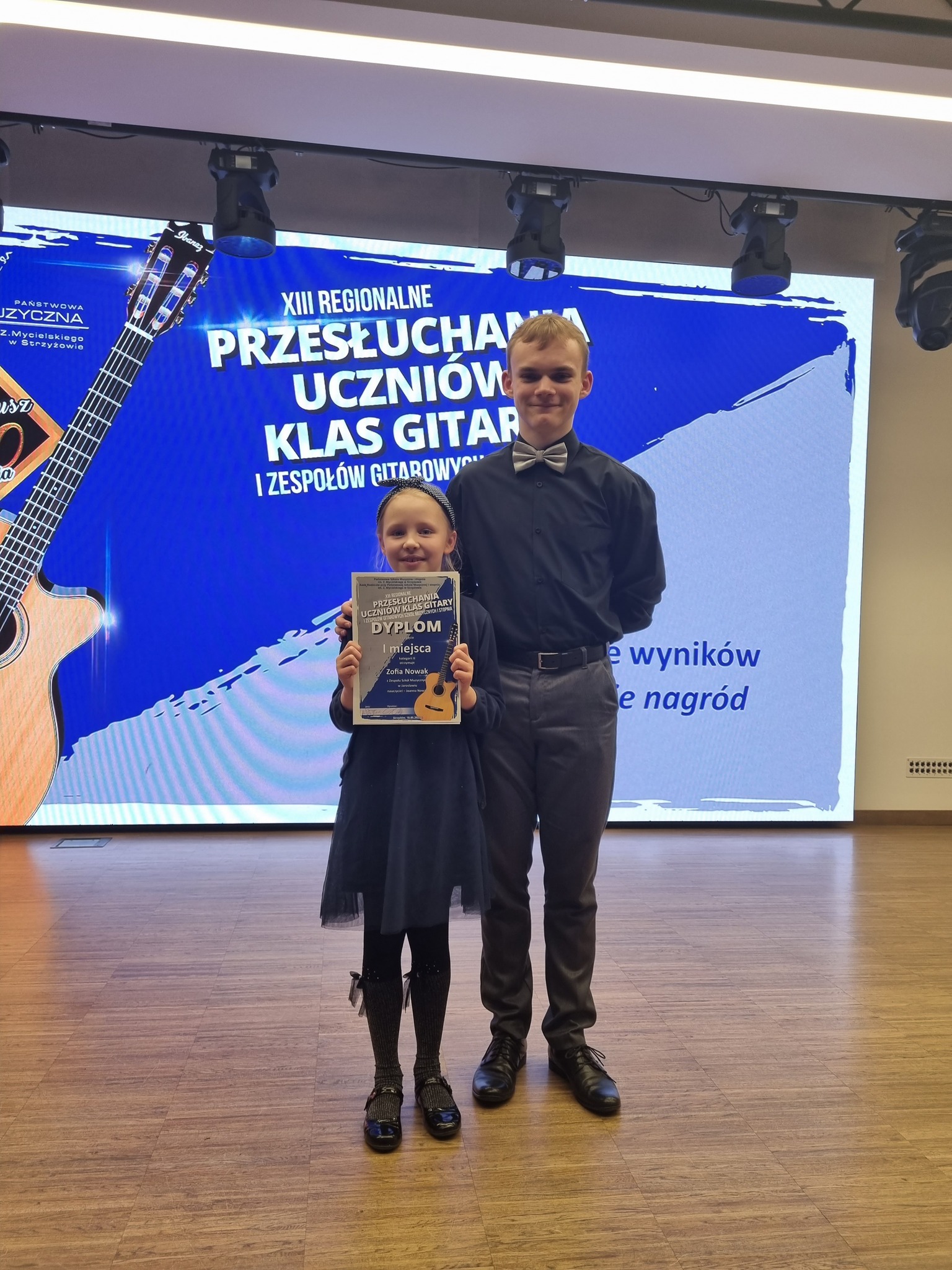 18 maja 2023 r. odbyły się XIII Regionalne Przesłuchania Uczniów Klas Gitary i Zespołów Gitarowych Szkół Muzycznych I stopnia w Strzyżowie. Laureatkami tego konkursu zostały uczennice naszej szkoły: Zofia Nowak z klasy gitary Pani mgr Joanny Nowak, która otrzymała I miejsce w kategorii II oraz Aniela Górska z klasy gitary Pana mgr Anatola Szamli, otrzymując II miejsce w kategorii II. Uczniów oceniało Jury w składzie: dr hab. Leszek Suszycki (UR Rzeszów, ZPSM w Przemyślu) dr Iwona Bodziak (PSM I i II st. w Sanoku) oraz mgr Adam Woch (UMFC Warszawa).