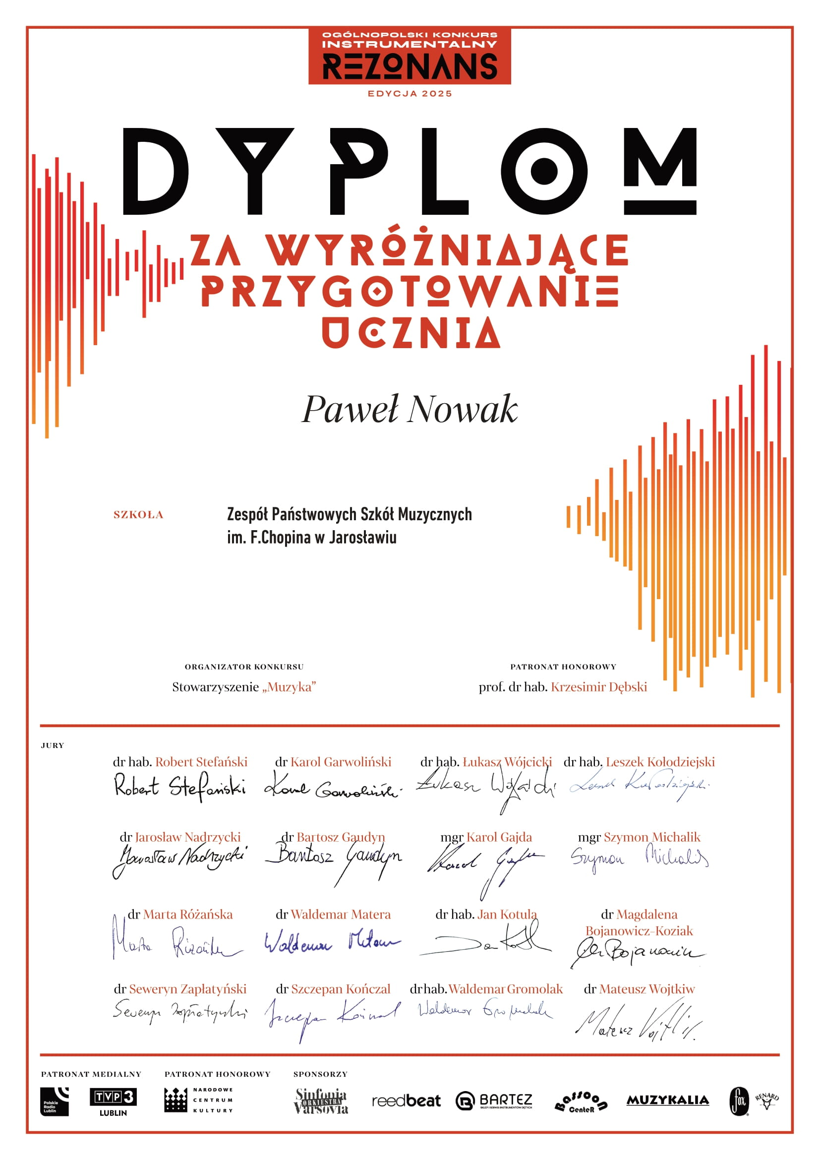 Sukcesy naszych uczniów na Ogólnopolskim Konkursie Instrumentalnym "REZONANS" - objętym patronatem honorowym przez prof. Krzesimira Dębskiego oraz Narodowe Centrum Kultury - Lublin, 17 maja 2025
