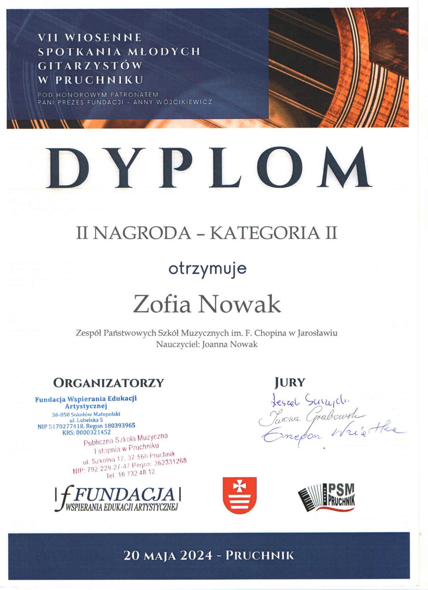 Sukcesy naszych uczniów w VII Wiosennych Spotkania Młodych Gitarzystów w Pruchniku - 20 maja 2024 r.