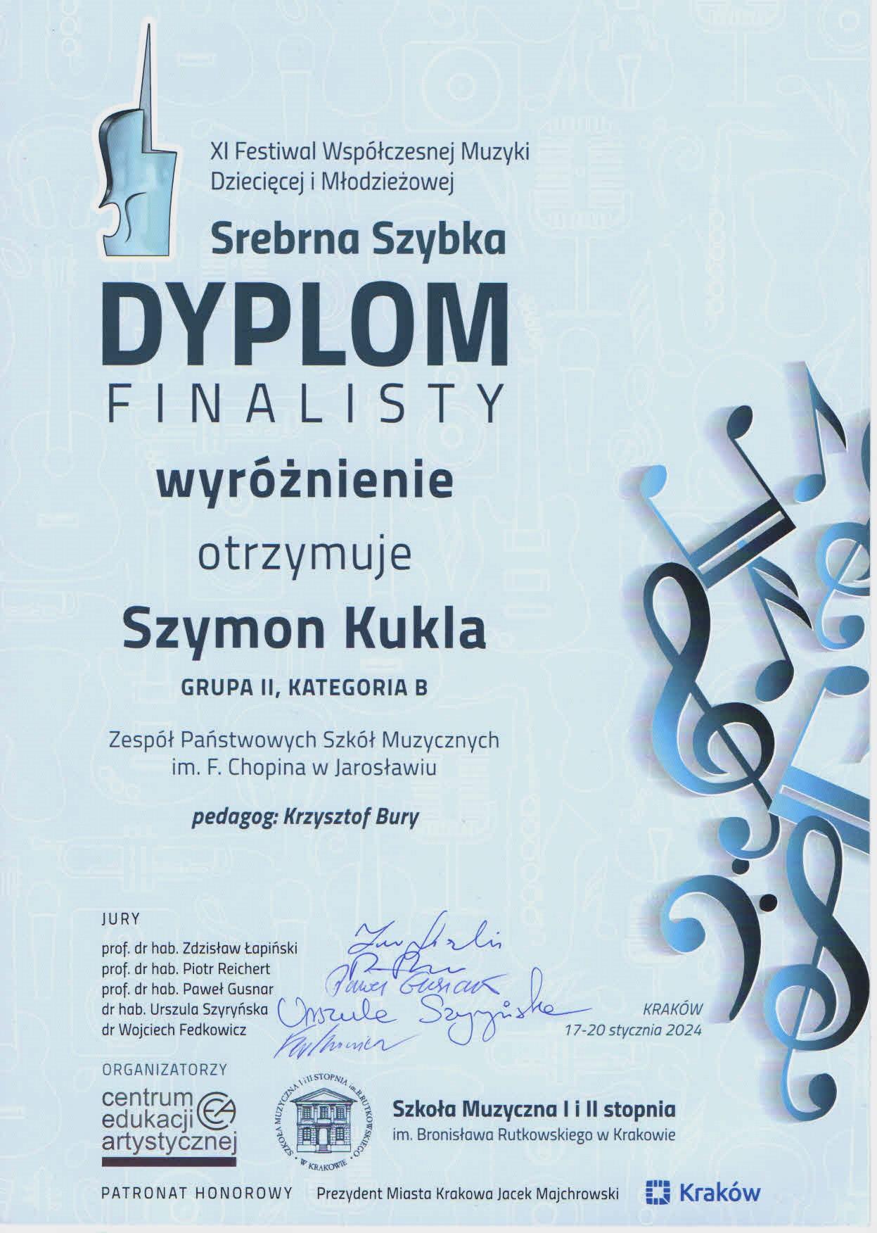 Szymon Kukla Finalistą Ogólnopolskiego Konkursu w Krakowie 17-20 stycznia 2024 r.