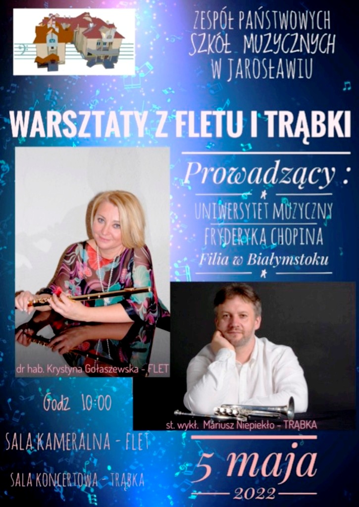 W dniu 5 maja 2022 r. w sali koncertowej naszej szkole odbyły się warsztaty trąbkowe. Prowadzącym warsztaty był trębacz st. wykł. Mariuszem Niepiekło absolwent Akademii Muzycznej im. Fryderyka Chopina w Warszawie, muzyk w orkiestrze Filharmonii Narodowej w Warszawie, oraz wykładowca białostockiej Filii Uniwersytetu Muzycznego im. Fryderyka Chopina. Atmosfera warsztatów była niezwykła z mnóstwem energii, inspiracji i pozytywnych emocji. W warsztatach wzięli udział uczniowie klasy trąbki naszej szkoły oraz uczniowie z ZPSM w Przemyślu. Dziękujemy wykładowcy za inspirujące warsztaty, oraz wszystkim Uczestnikom za udział