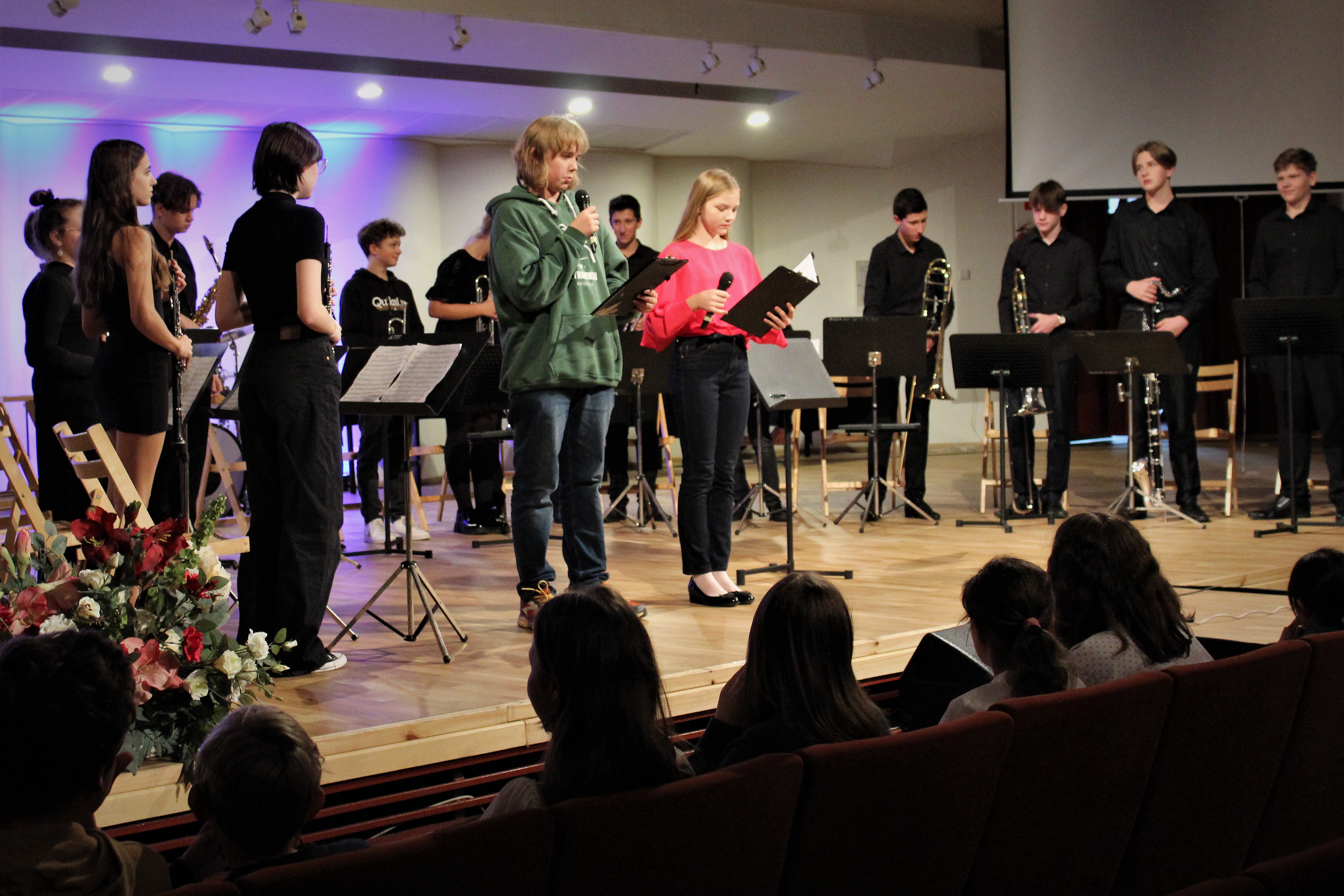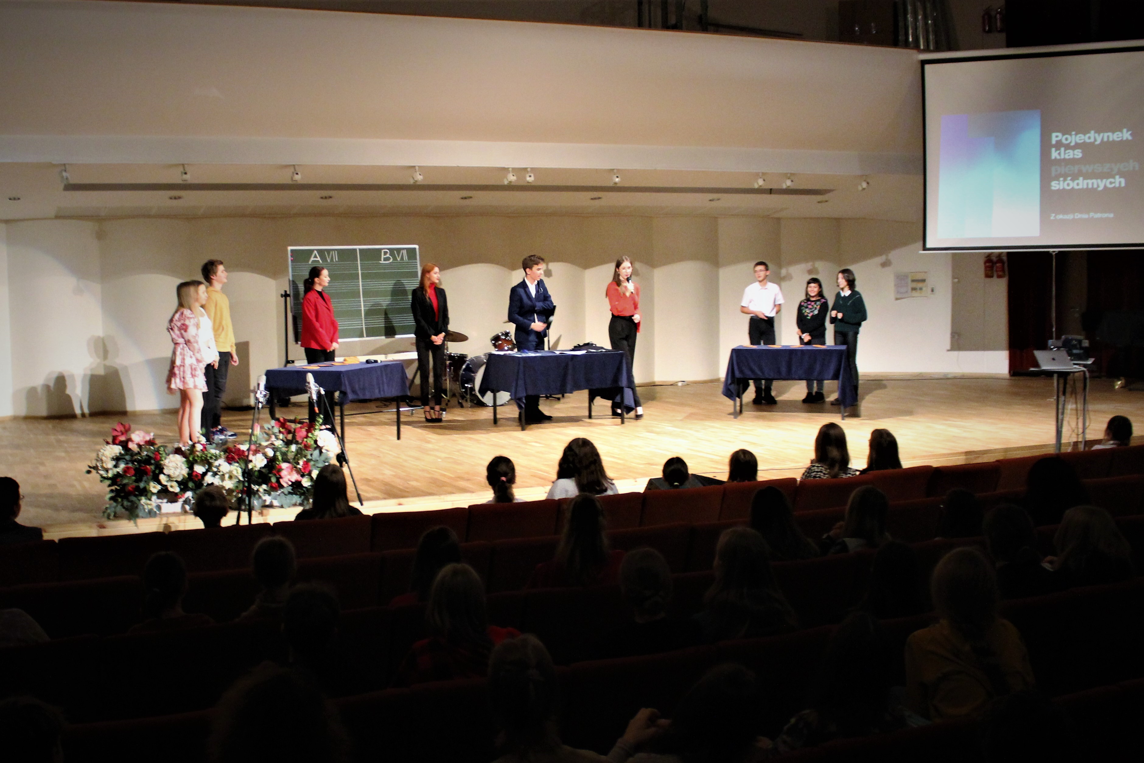 3 października 2022 r. odbyła się w naszej szkole impreza "Dzień Patronów". Dyr. Bernadeta Stańczyk w krótkim wystąpieniu, omówiła sylwetki: Wojciecha Kilara, Stanisława Moniuszki i Karola Szymanowskiego. Następnie Samorząd Uczniowski POSM II st. przeprowadził dla uczniów klas: 7A i 7B krótki konkurs z wiedzy o szkole. Minimalną większością głosów wygrała klasa 7B. Po występach artystycznych uczniów młodszych klas, przedstawili się zebranym, członkowie nowego Samorządu Uczniowskiego.