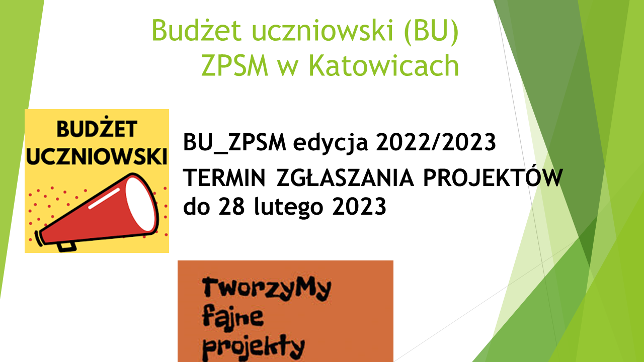 Nauczyciele, Rada Rodziców oraz Samorząd Uczniowski zapraszają wszystkich uczniów do udziału w tegorocznej drugiej edycji Budżetu Uczniowskiego Zespołu Państwowych Szkół Muzycznych (BU_ZPSM) im. Wojciecha Kilara w Katowicach.