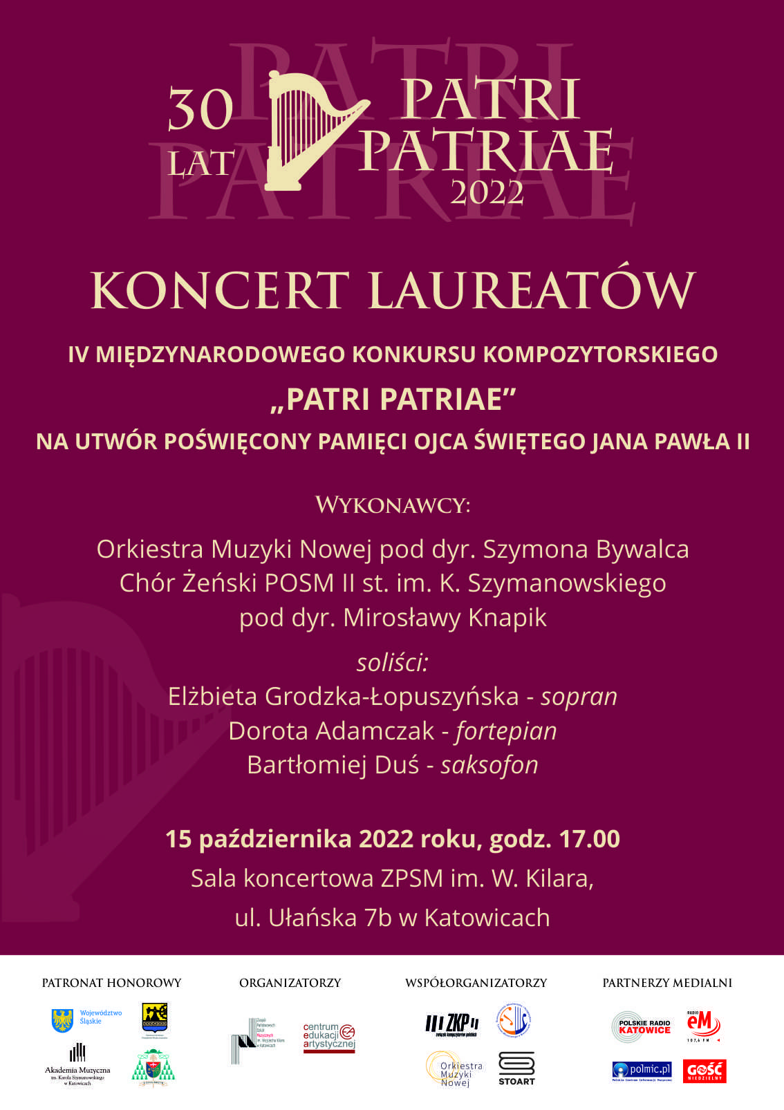 Międzynarodowy Konkurs Kompozytorski PATRI PATRIAE to prestiżowa propozycja artystyczna Państwowej Ogólnokształcącej Szkoły Muzycznej II st. im. K.arola Szymanowskiego w Katowicach. Założeniem konkursu jest promocja wyróżniających się młodych indywidualności muzycznych, a także ukierunkowanie ich na wartości wskazane przez Ojca Świętego. W konkursie mogą brać udział uczniowie oraz młodzi kompozytorzy. Konkurs otwiera przed jego uczestnikami drogę kariery kompozytorskiej, a nade wszystko zachęca młodych muzyków do poszerzania swych horyzontów oraz rozwijania swoich pasji.