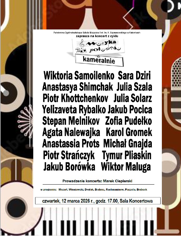 zaprasza na koncert z cyklu Muzyka po południu kameralnie czwartek, 12 marca 2026 r., godz. 17.00,