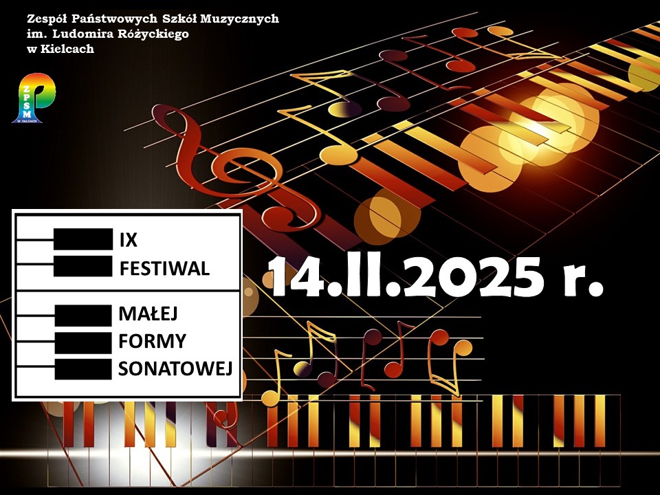 Serdecznie zapraszamy Uczniów klas fortepianu Szkół Muzycznych I stopnia z województwa świętokrzyskiego do udziału w IX edycji Festiwalu Małej Formy Sonatowej, który ma charakter konkursu i odbędzie się 14 lutego 2025 r. w Zespole Państwowych Szkół Muzycznych im. L. Różyckiego w Kielcach.