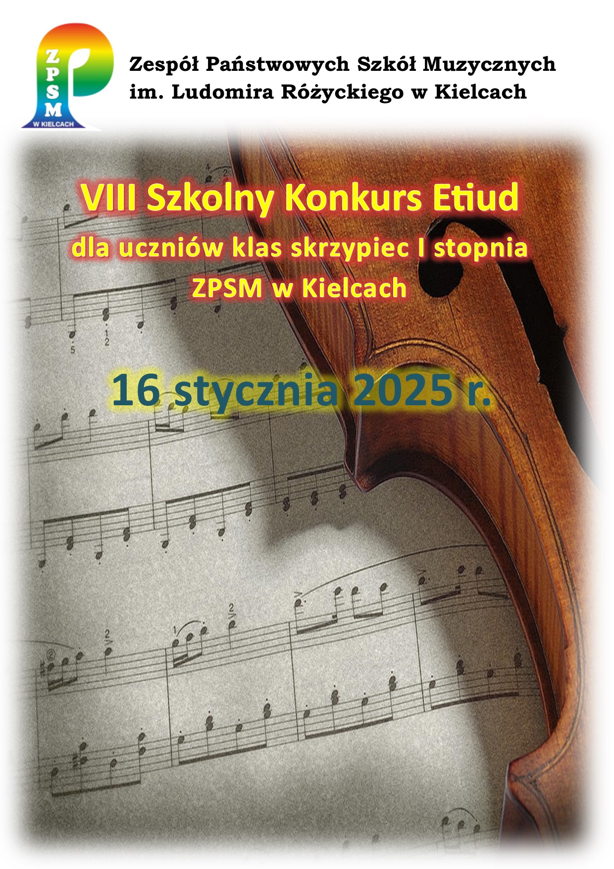 VIII Szkolny Konkurs Etiud dla Klas Skrzypiec ZPSM im. L. Różyckiego I stopnia w Kielcach 16 stycznia 2025 r.