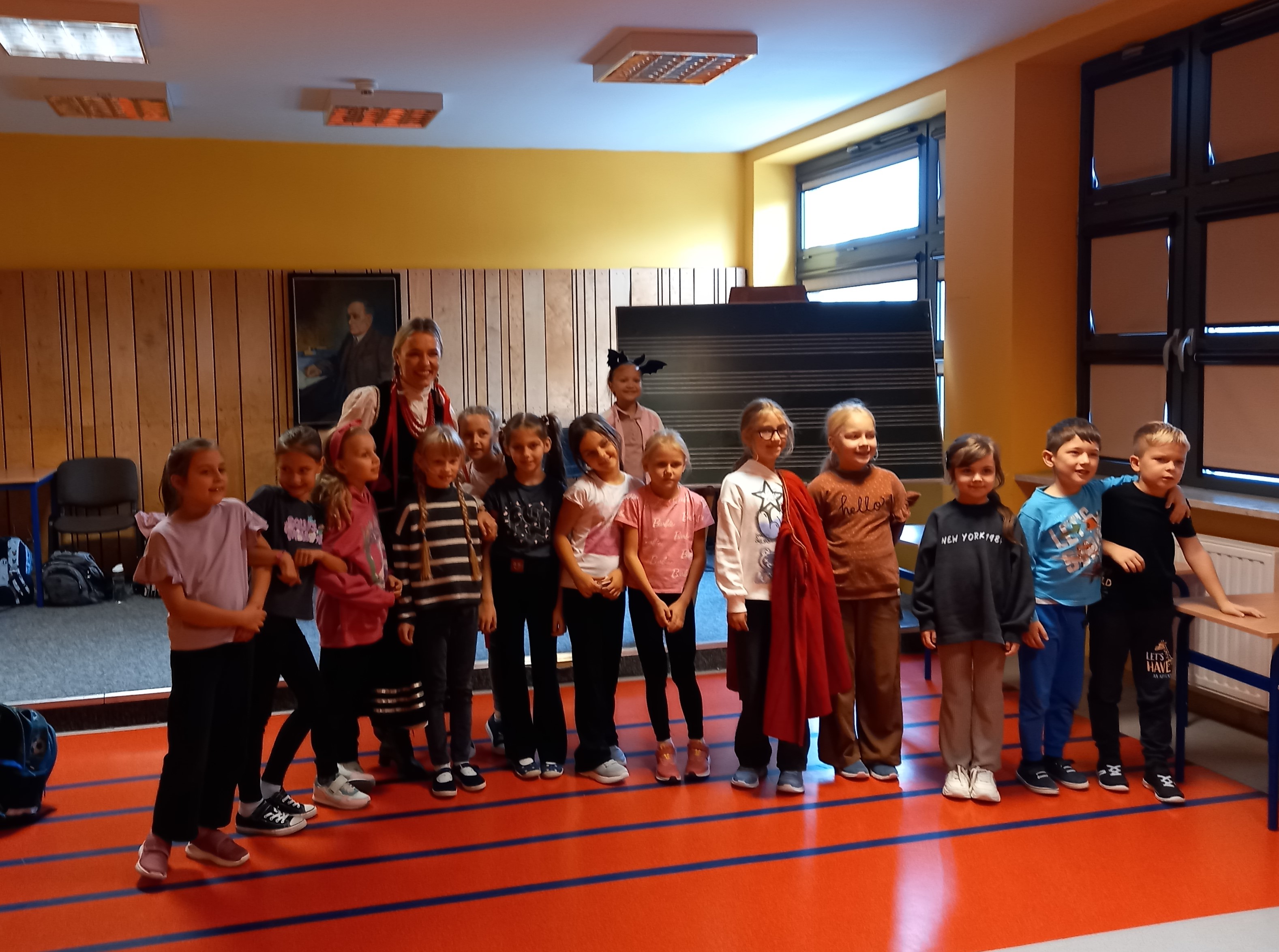 i propagatorką folkloru świętokrzyskiego. Nasz gość p. Kama Kępczyńska przybliżyła uczniom bogatą kulturę i tradycje, w tym lokalne legendy, które ukształtowały tożsamość Świętokrzyskiego, gwarę, pieśni ludowe i tradycyjny strój bieliński.