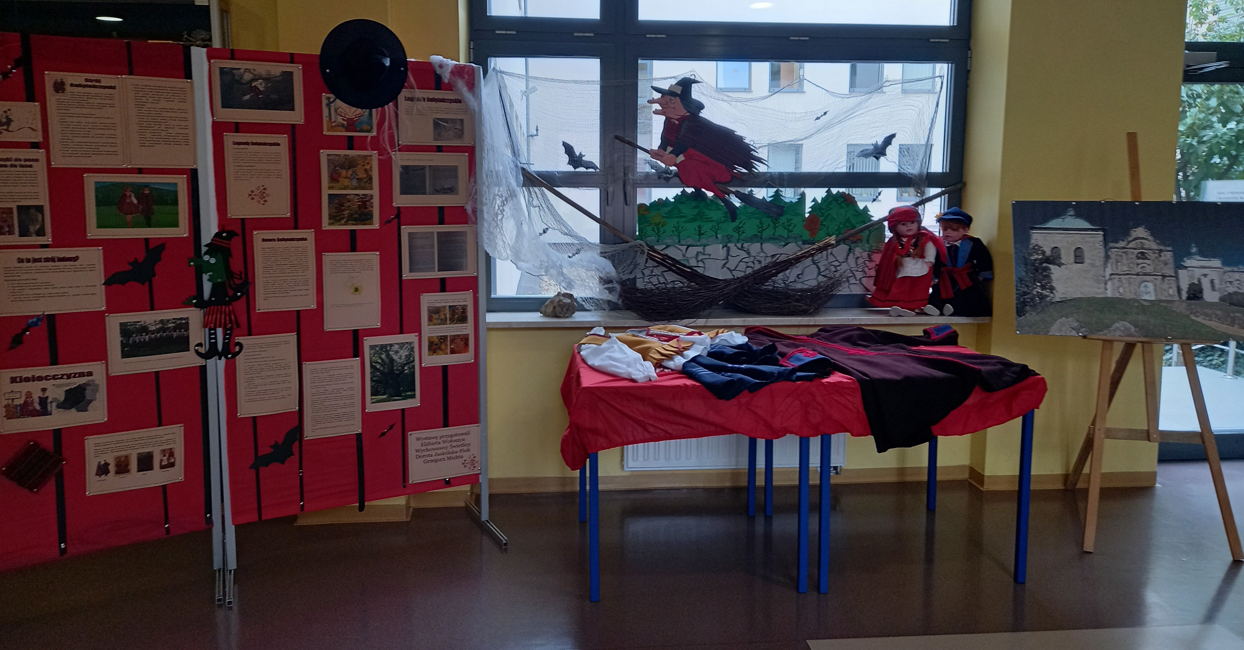 W dniach 07.10- 18.10.2024 r. w naszej Szkole miała miejsce wystawa pn. „Świętokrzyskie opowieści – legendy, gwara, tradycje, stroje”. W ramach wystawy odbyły się warsztaty