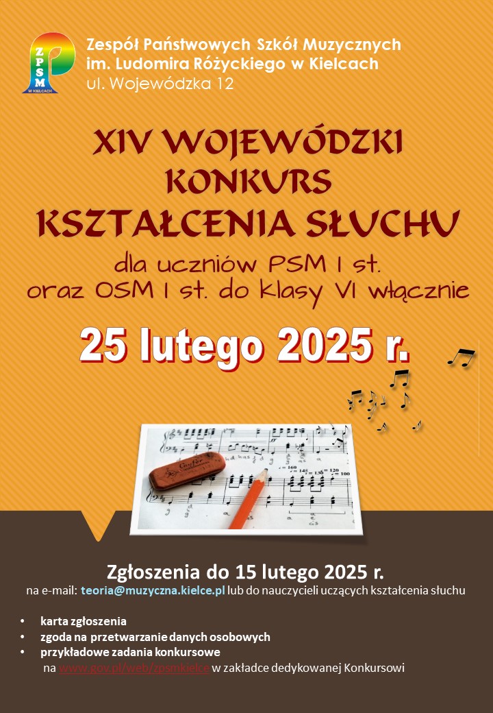 XIV Wojewódzki Konkurs Kształcenia Słuchu dla uczniów szkół muzycznych I stopnia z województwa świętokrzyskiego 25.02.2025