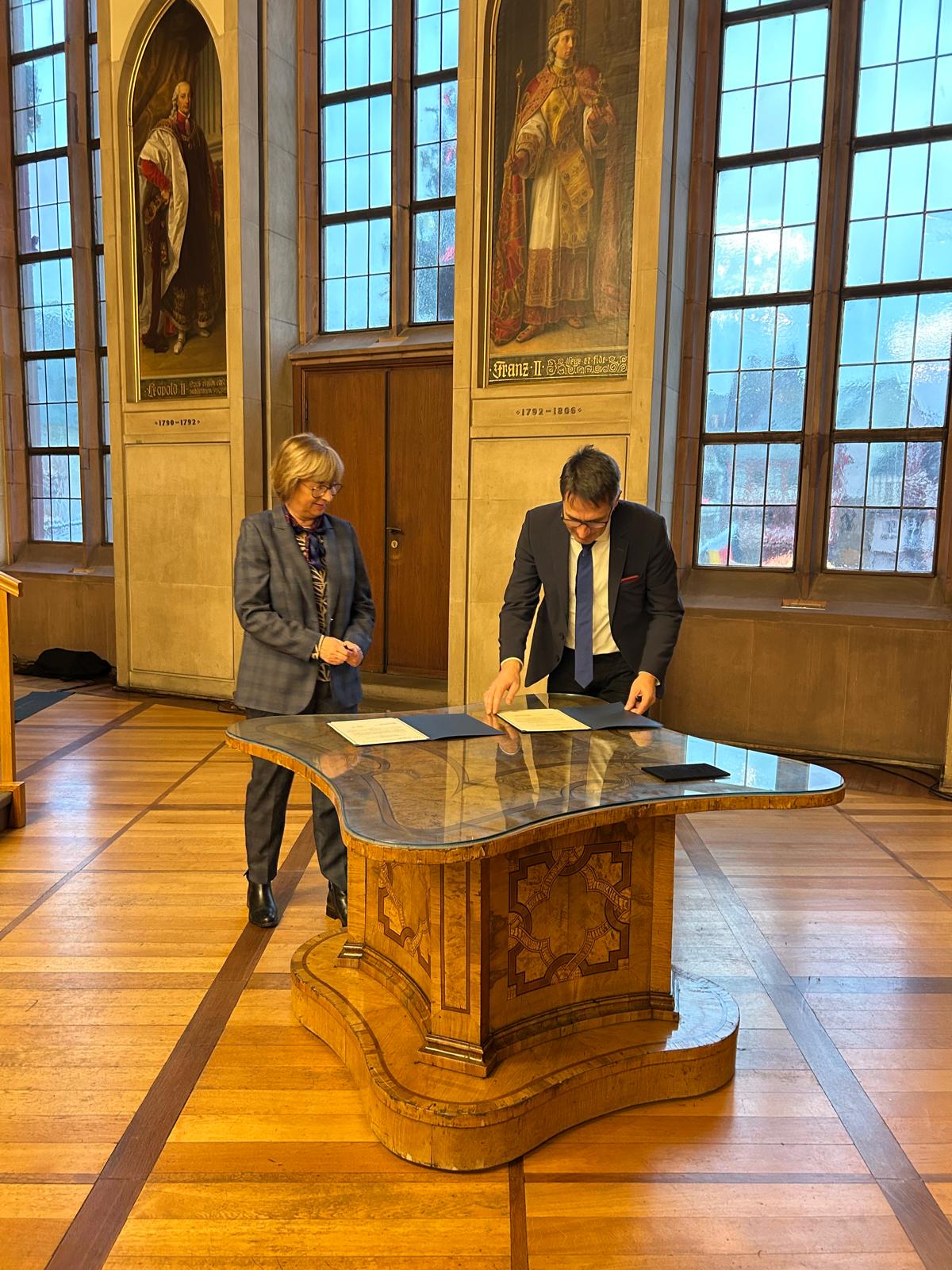 13 grudnia 2024 roku w sali cesarskiej Ratusza miasta Frankfurt nad Menem odbyła się wyjątkowa uroczystość - podpisano list intencyjny dotyczący współpracy w zakresie wymiany młodzieży pomiędzy Zespołem Państwowych Szkół Muzycznych im. Mieczysława Karłowicza w Krakowie a Carl-Schurz-Schule we Frankfurcie nad Menem. Szkołę niemiecką reprezentował pan dyrektor Christof Gans, a naszą szkołę reprezentowała pani Małgorzata Zgałat-Łozińska - zastępca dyrektora. Nawiązanie tej współpracy to efekt długoletnich kontaktów z Towarzystwem Przyjaźni Frankfurt/Kraków.