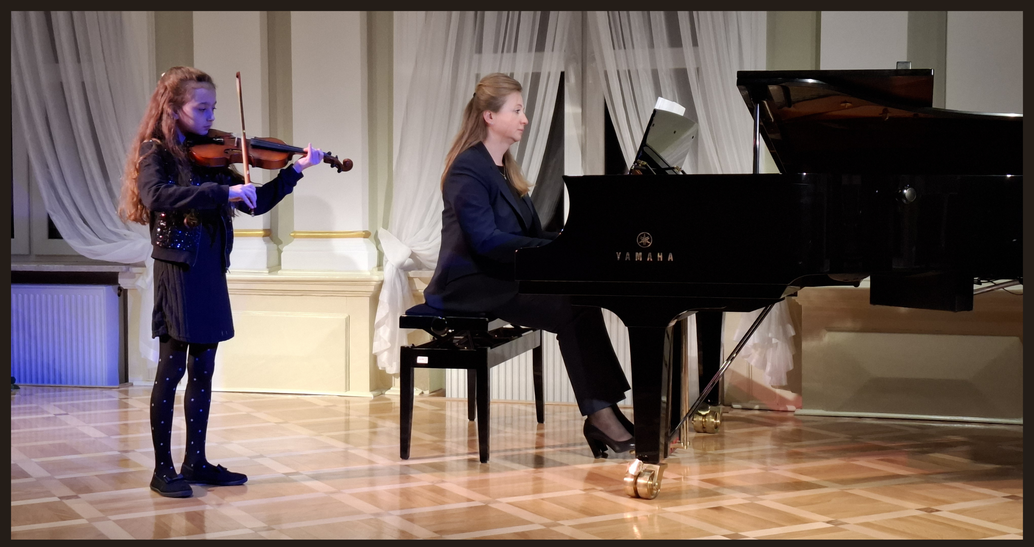 W pierwszej części koncertu usłyszeliśmy najmłodsze uczennice: Julię Karbowniczek i Amelię Stec z klasy wiolonczeli pani Agnieszki Kucab-Weryk, która towarzyszyła swym uczennicom przy fortepianie oraz Antoninę Pawliszak i Barbarę Demkiewicz z klasy skrzypiec pani Magdaleny Betlei. Skrzypaczkom akompaniowała pani Stefaniia Verbovetska.