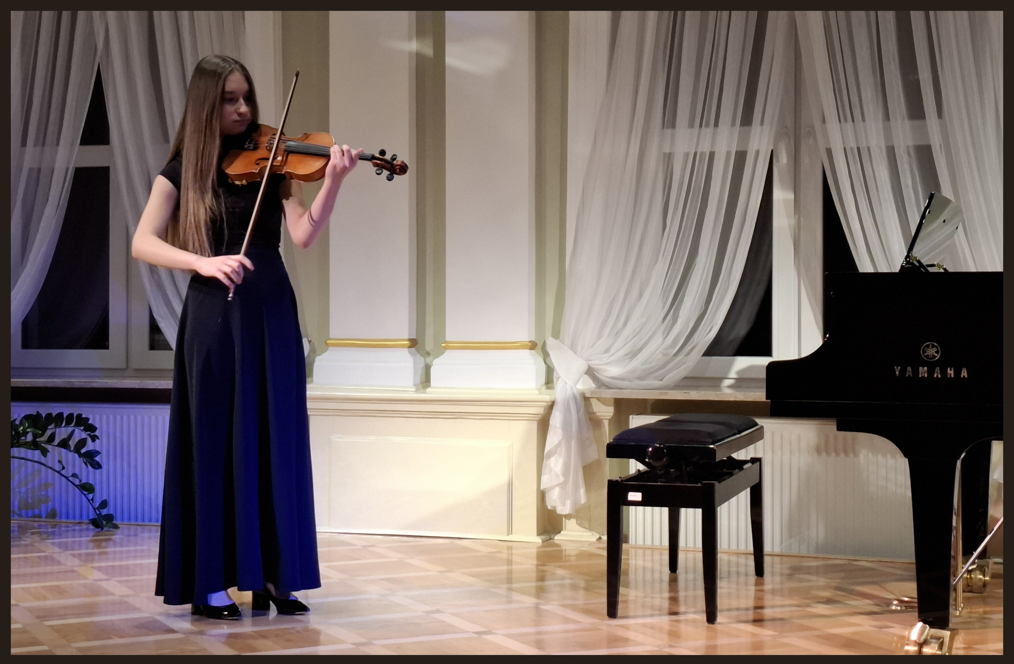 W finale koncertu na scenie zaprezentował się Jakub Podwyszyński z klasy skrzypiec pana Krzysztofa Nowińskiego, a towarzyszył mu kolega z klasy Gustaw Siepioła, który uczy się w klasie fortepianu pani Oksany Masny. W ich wykonaniu usłyszeliśmy: Henri Vieuxtemps Koncert skrzypcowy nr 5 a-moll, cz. 1 .