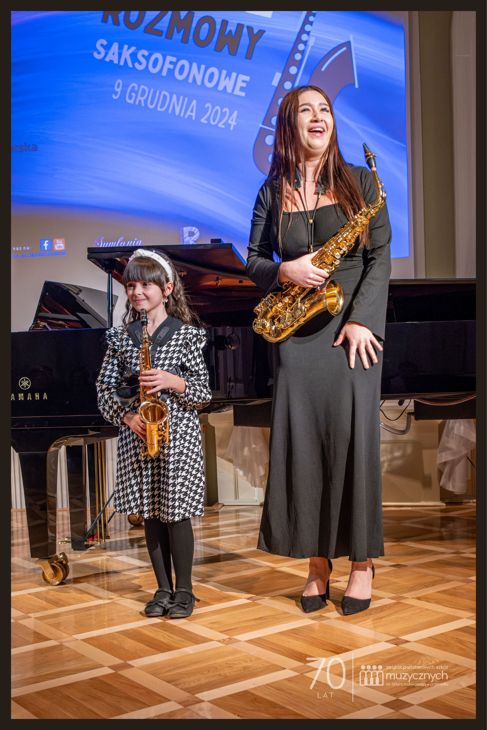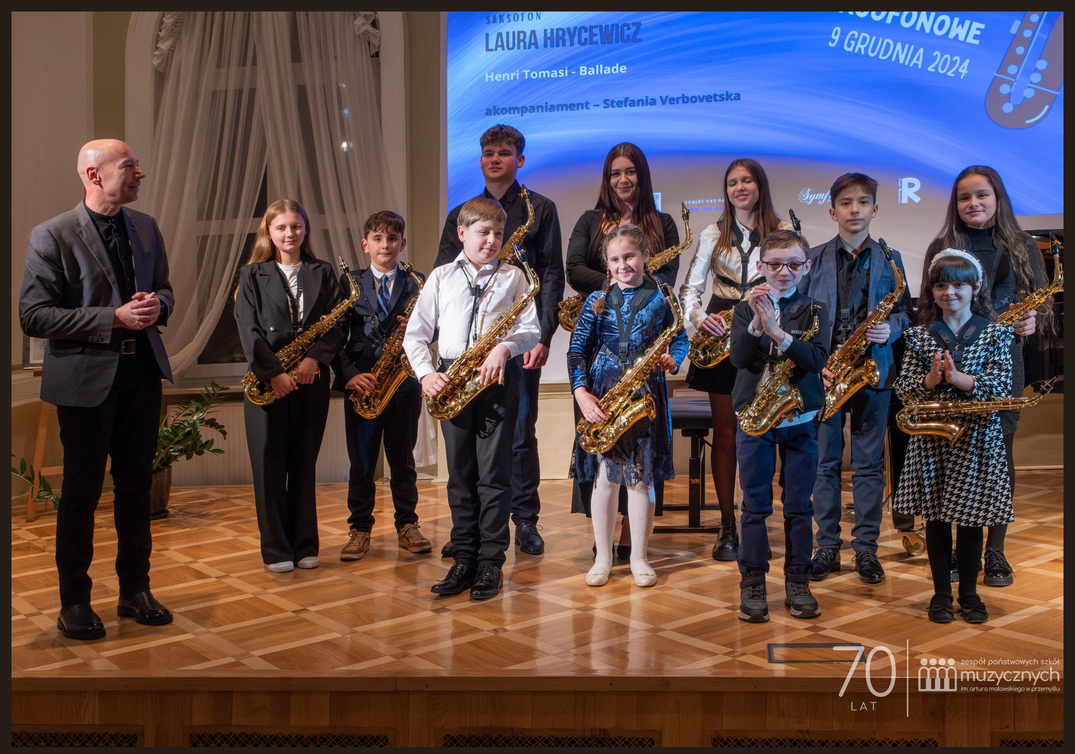 9 grudnia 2024 roku w niezwykle klimatycznej Sali Lustrzanej naszej szkoły, odbył się koncert "Nocne Rozmowy Saksofonowe", który zgromadził miłośników muzyki saksofonowej. Uczniowie klasy saksofonu Pana Jacka Szotta zaprezentowali swoje umiejętności w wyjątkowym repertuarze, zachwycając publiczność różnorodnością i jakością wykonań.