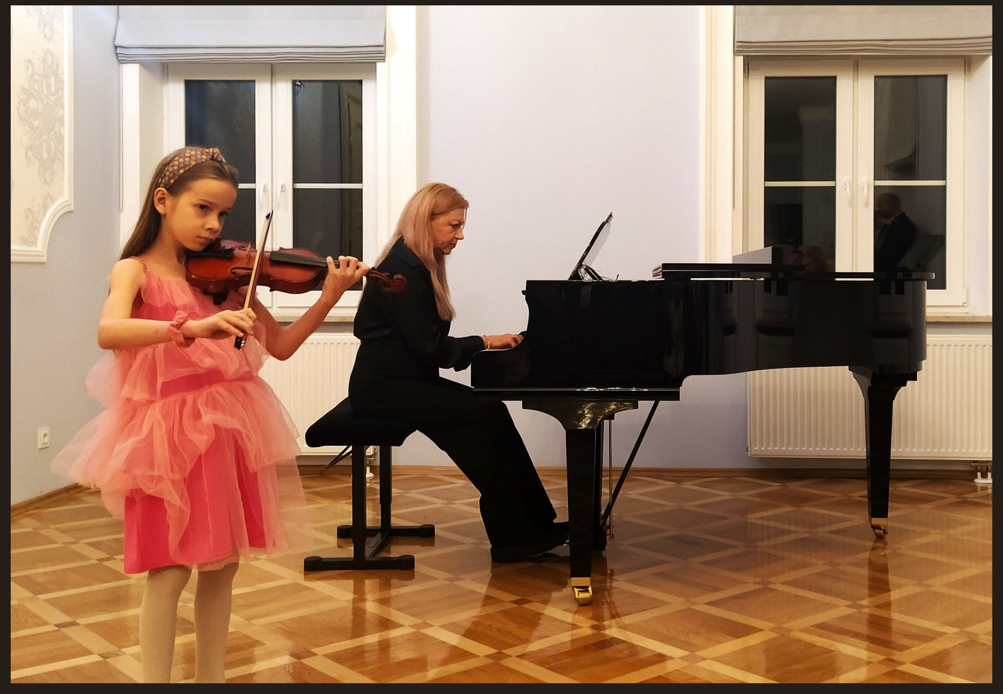 Młodym skrzypkom przy fortepianie towarzyszyła pani Krystyna Raba-Opacka oraz pan Wojciech Kogut.