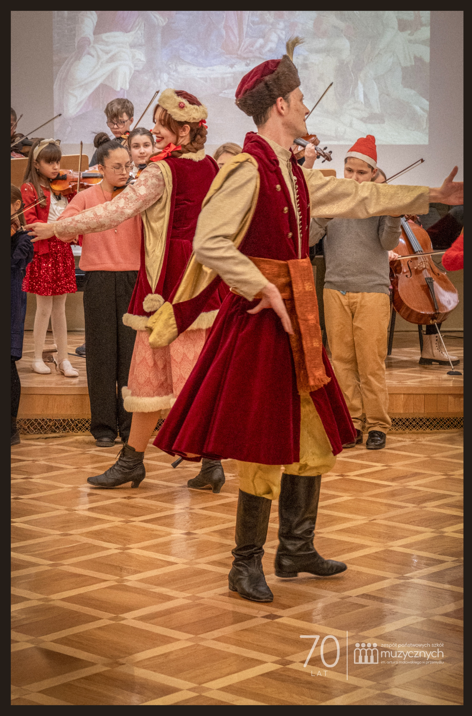 Na scenie wystąpiły utworzone specjalnie na tę okazję zespoły smyczkowe, złożone z uczniów i nauczycieli klas skrzypiec, altówki oraz wiolonczeli. Gościnnie wystąpił również zespół skrzypcowy z PSM I st. w Lubaczowie. Wydarzenie to było wyjątkowe w swej oprawie, ponieważ w finale koncertu zabrzmiała orkiestra smyczkowa, złożona ze wszystkich wykonawców. W tym składzie wykonano kilka kolęd, a wśród nich zabrzmiała „Bóg się rodzi”, do której tancerze Zespołu Pieśni i Tańca: Jowita Derewońko i Tomasz Warcholak zaprezentowali kroki poloneza.