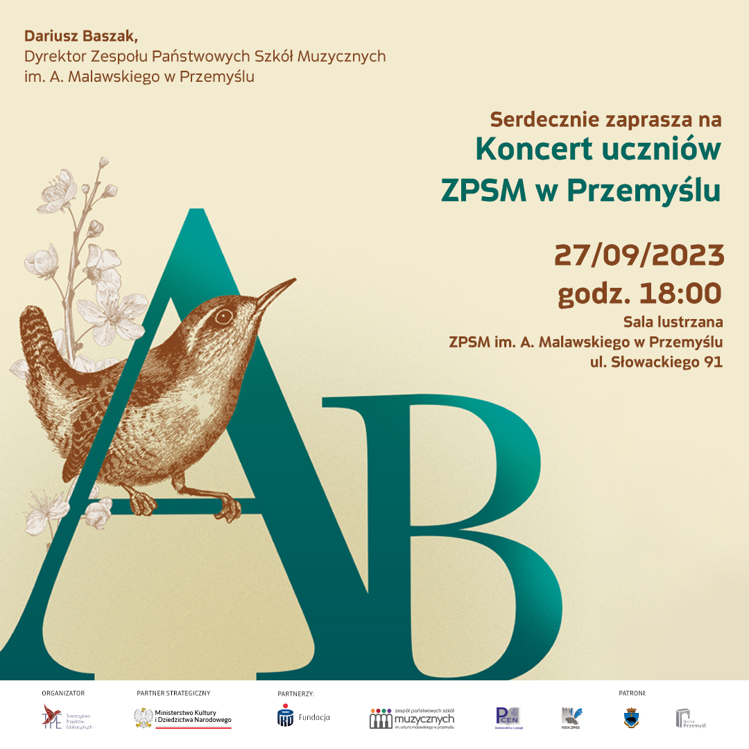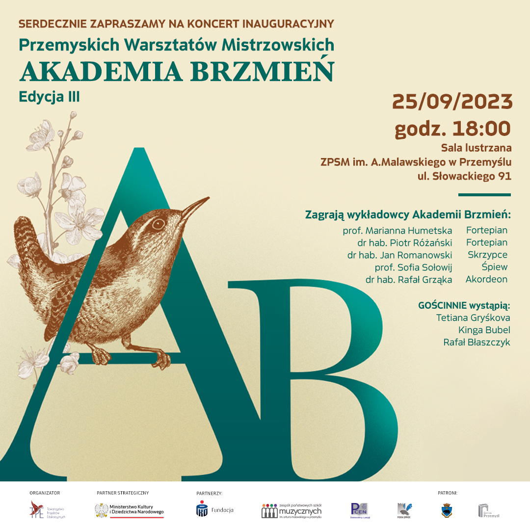 Zespół Państwowych Szkół Muzycznych im Artura Malawskiego w Przemyślu i Fundacja Towarzystwo Projektów Edukacyjnych mają zaszczyt ZAPROSIĆ na III edycję warsztatów w dniach 25-28.09.2023.