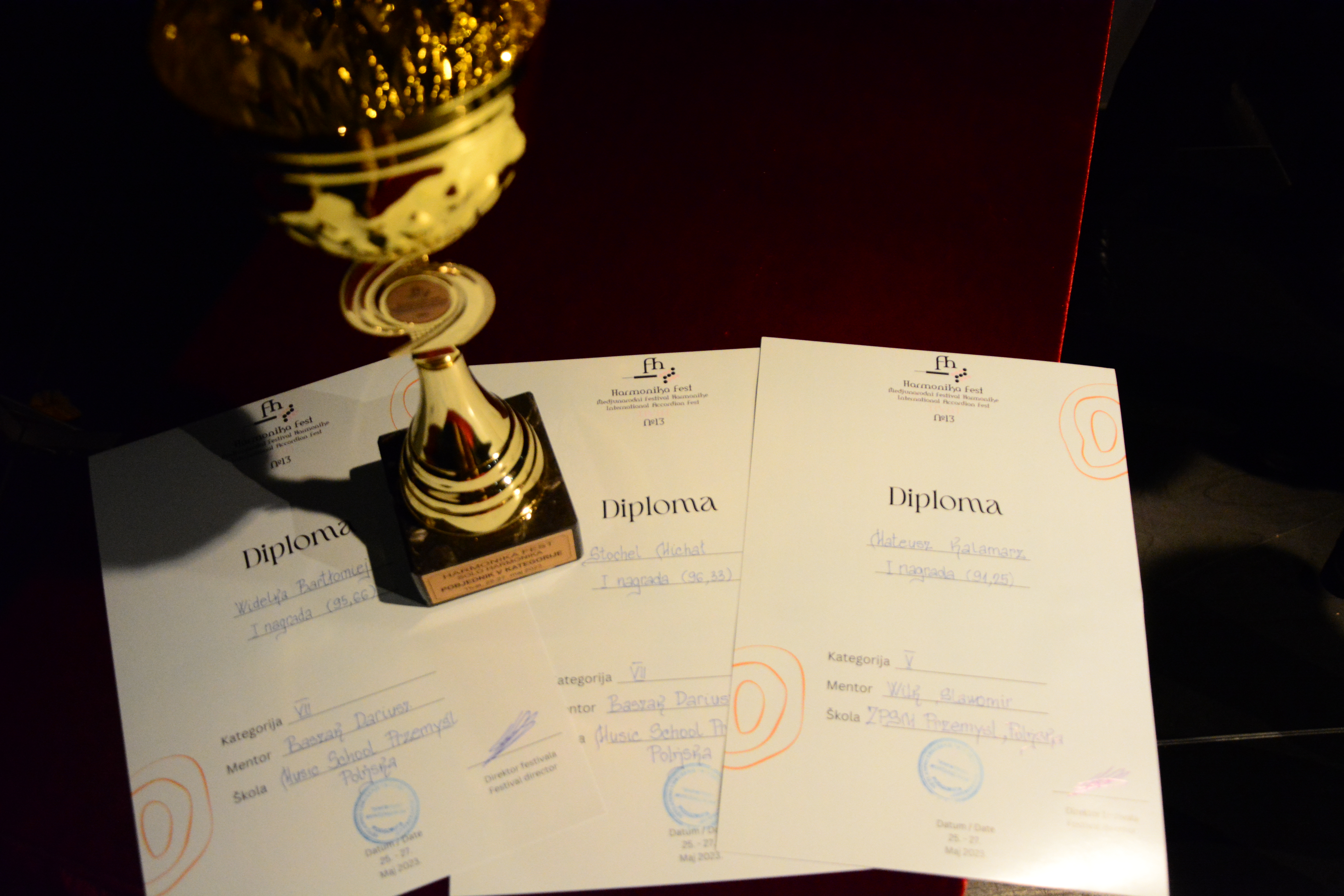 W festiwalu tym przeprowadzony został także konkurs, w którym wszyscy młodzi akordeoniści naszej Szkoły zajęli I miejsca w swoich kategoriach wiekowych: Mateusza Kałamarz, z klasy Pana Sławomira Wilka został zwycięzcą kategorii do lat 14, natomiast Michał Stochel i Bartłomiej Widełka, uczący się na co dzień pod kierunkiem pana dyrektora Dariusza Baszaka zajęli I miejsce w kategorii do lat 16.
