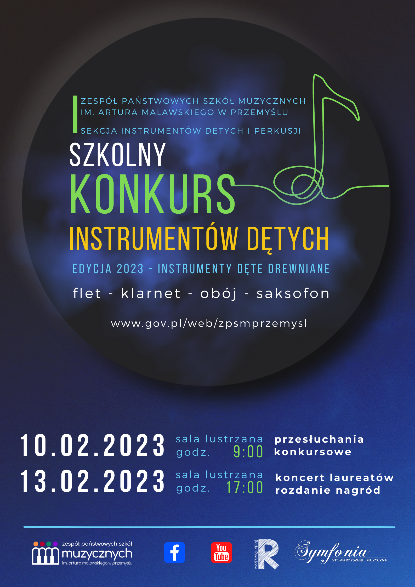 13 lutego 2023r. zakończył się I Szkolny Konkurs Instrumentów Dętych – edycja 2023. Celem konkursu była popularyzacja instrumentów dętych a także promocja i wsparcie uczniów w przygotowaniu do występów scenicznych. Pierwsza, historyczna, edycja konkursu obejmowała instrumenty dęte drewniane takie jak: flet, klarnet, obój i saksofon.
