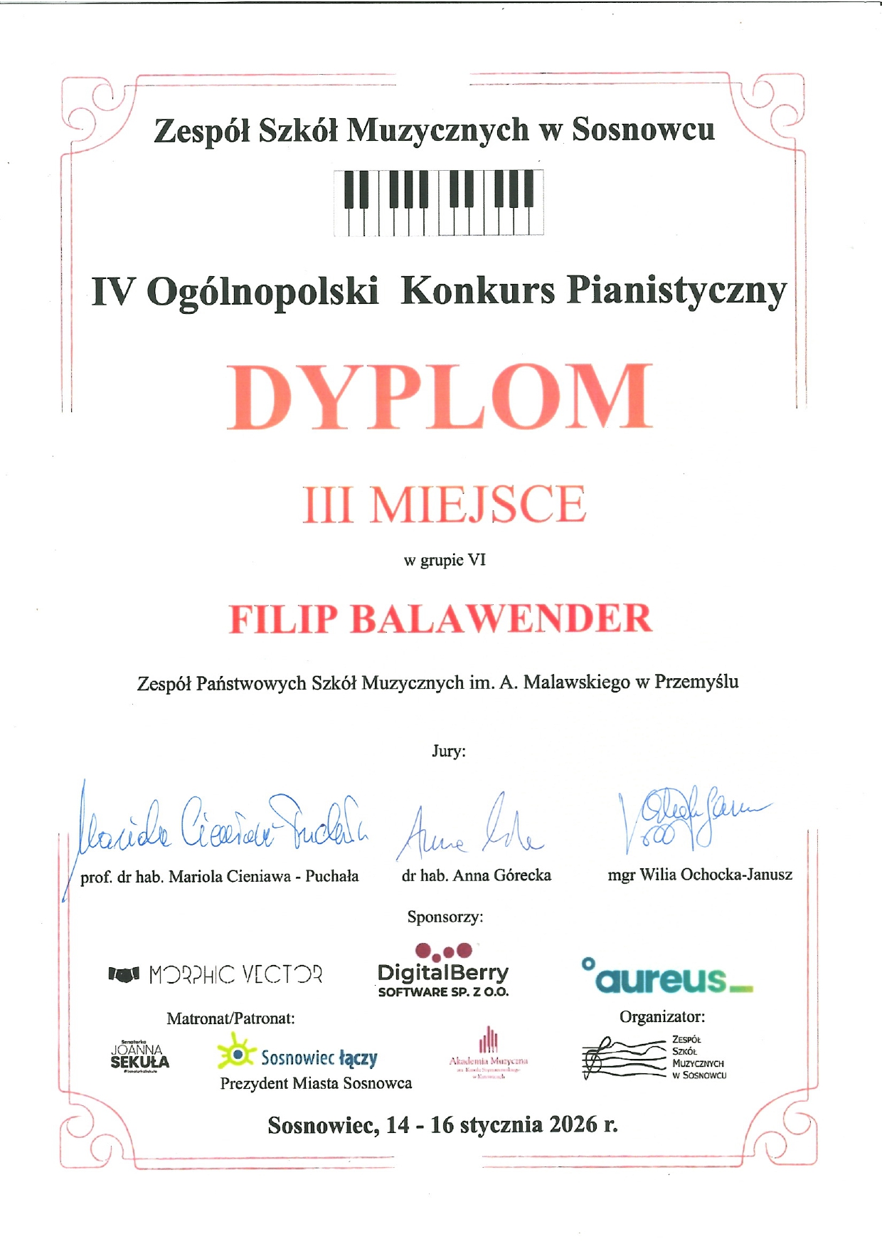 III miejsceFilip BALAWENDER – naucz. Łukasz Magdziak / Oksana Masna