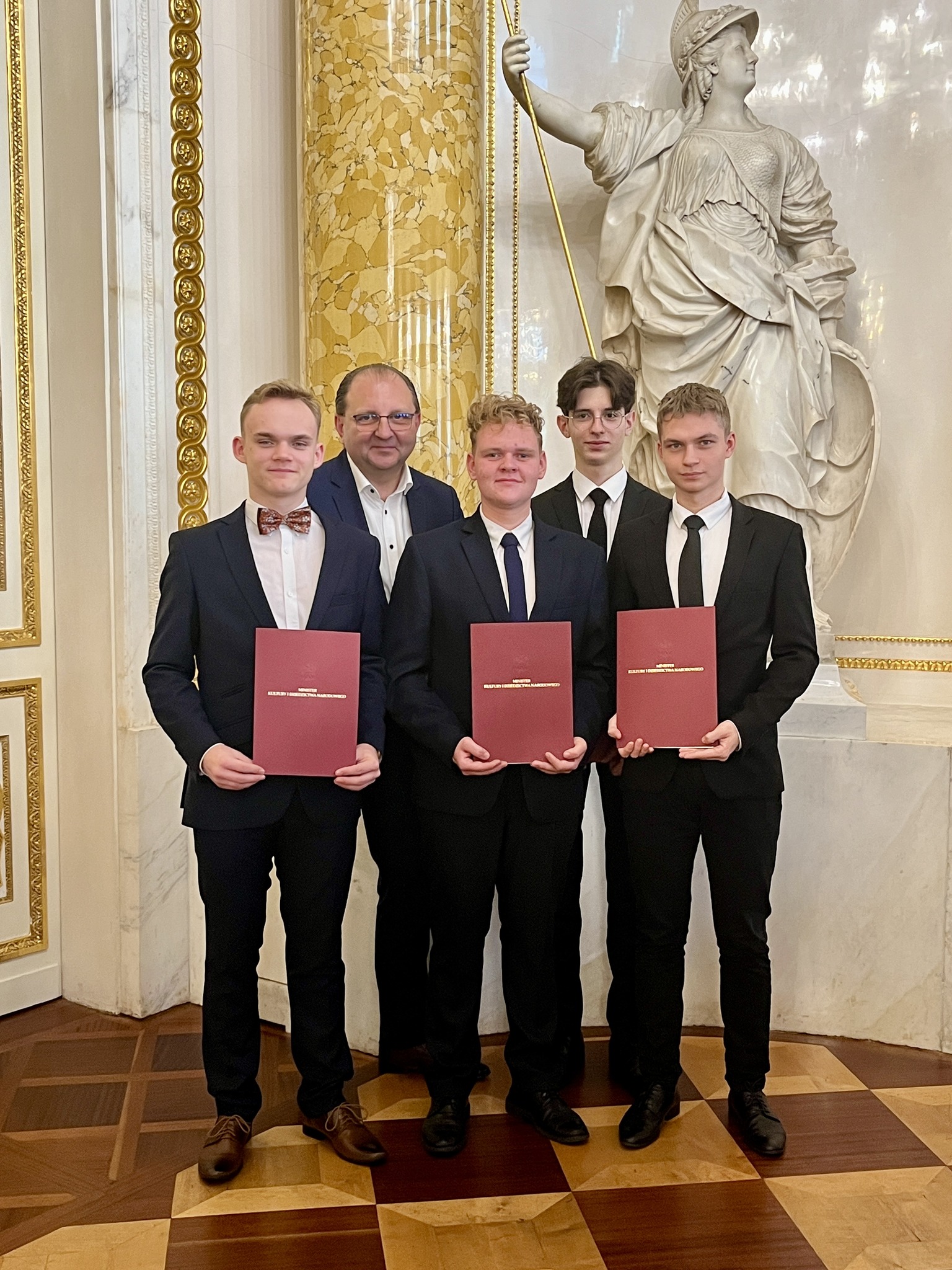 W grupie 70 wyróżnionych uczniów ze szkół baletowych, muzycznych i plastycznych całej Polski stypendium otrzymało także czworo uczniów naszej szkoły: Jakub Chachura, Mateusz Kałamarz, Michał Stochel oraz Bartłomiej Widełka.