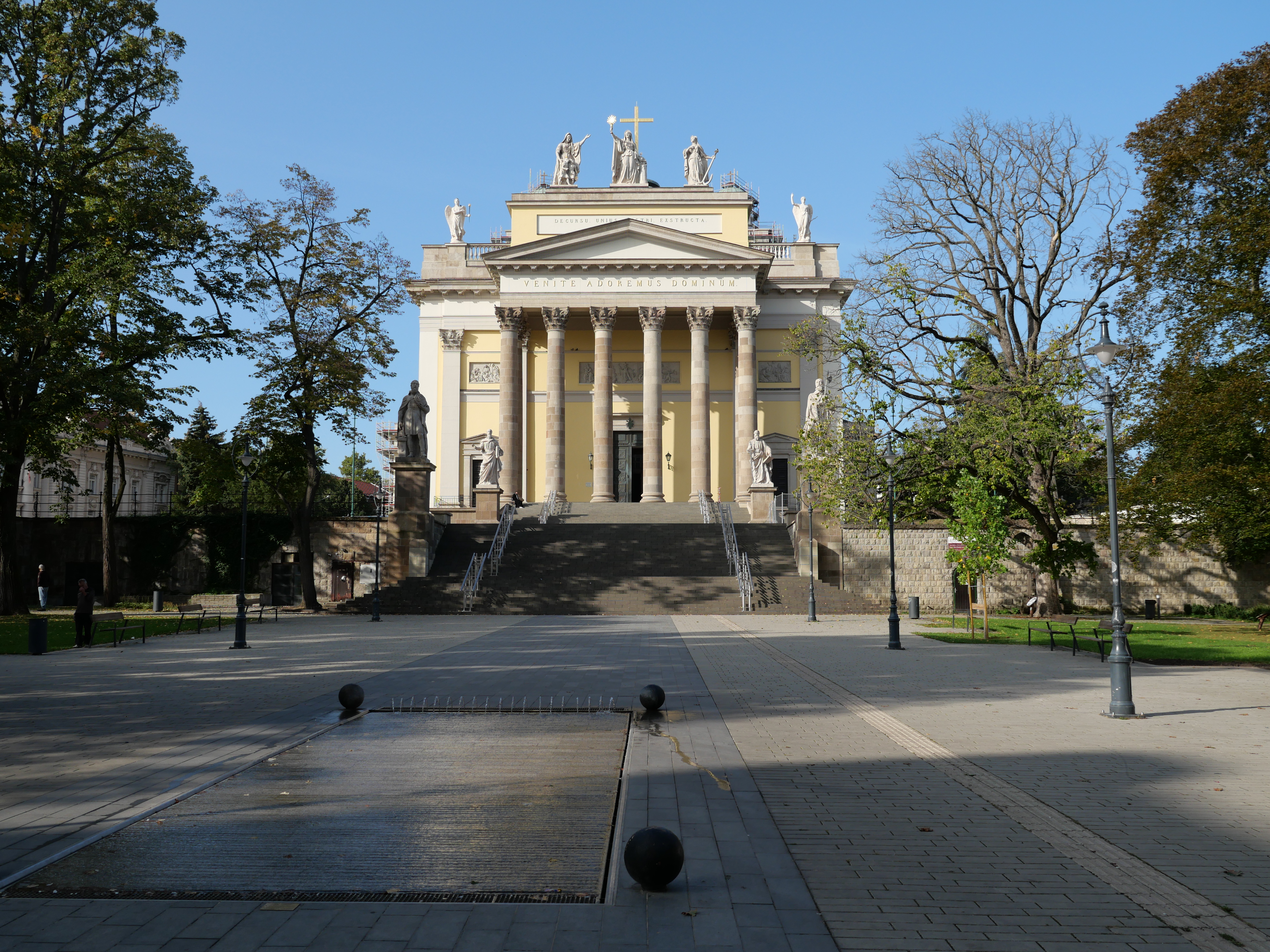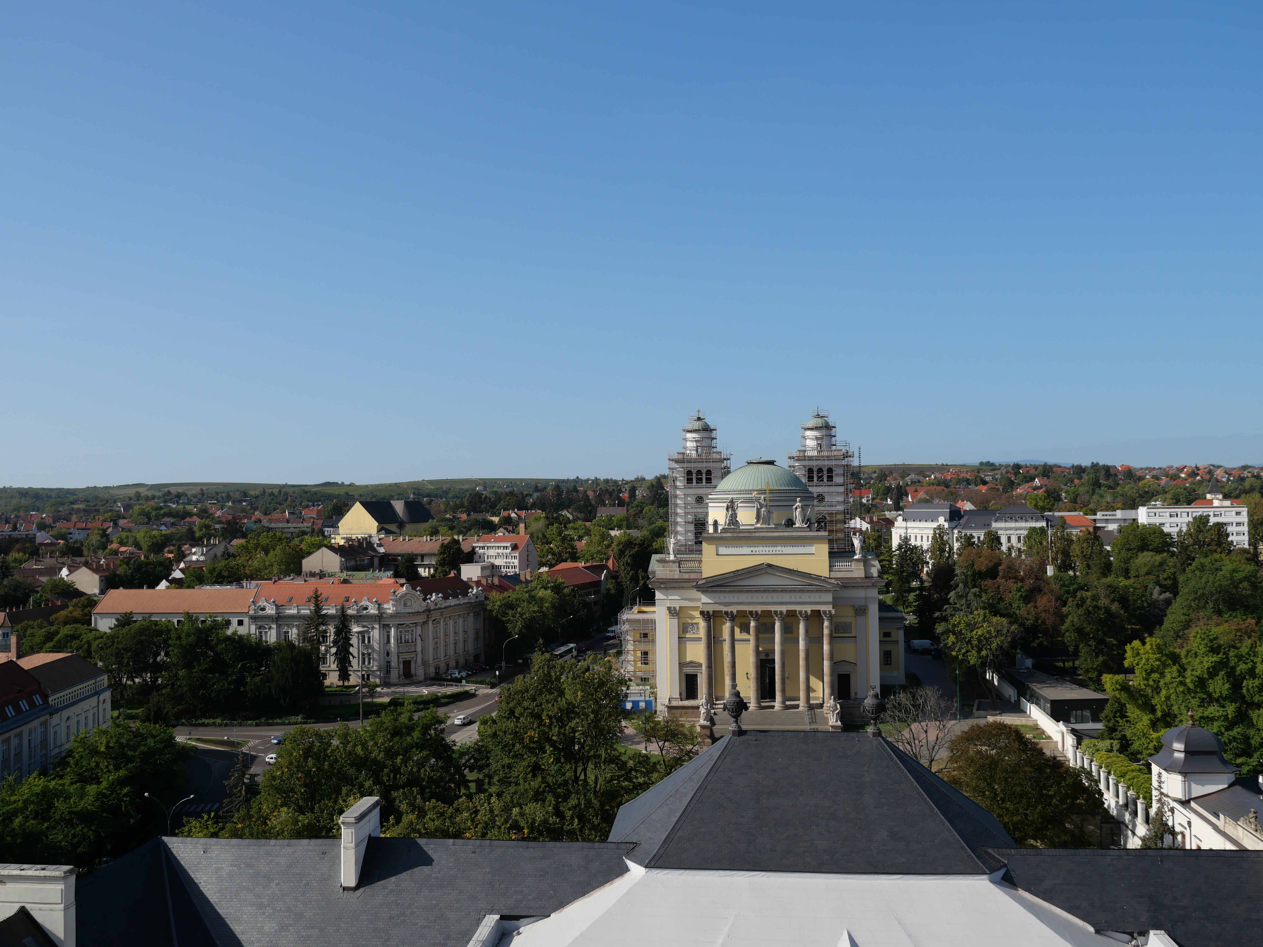 Kolejnym punktem była Bazylika archikatedralna pod wezwaniem św. Jana Ewangelisty. Ta majestatyczna katedra to duma miasta Eger, zachwycająca zarówno swoim wnętrzem, jak i zewnętrzną fasadą. Świątynię wzniesiono w XIX wieku na przełomie 1831-1837 roku. Przy głównym wejściu stoją wspaniałe rzeźby, a kopuła katedry jest bardzo bogato zdobiona, tak samo zresztą, jak i cała świątynia. Spacerując po jej wnętrzu, mogliśmy podziwiać piękne witraże i monumentalne ołtarze. Od maja do października odbywają się tam koncerty muzyki organowej.