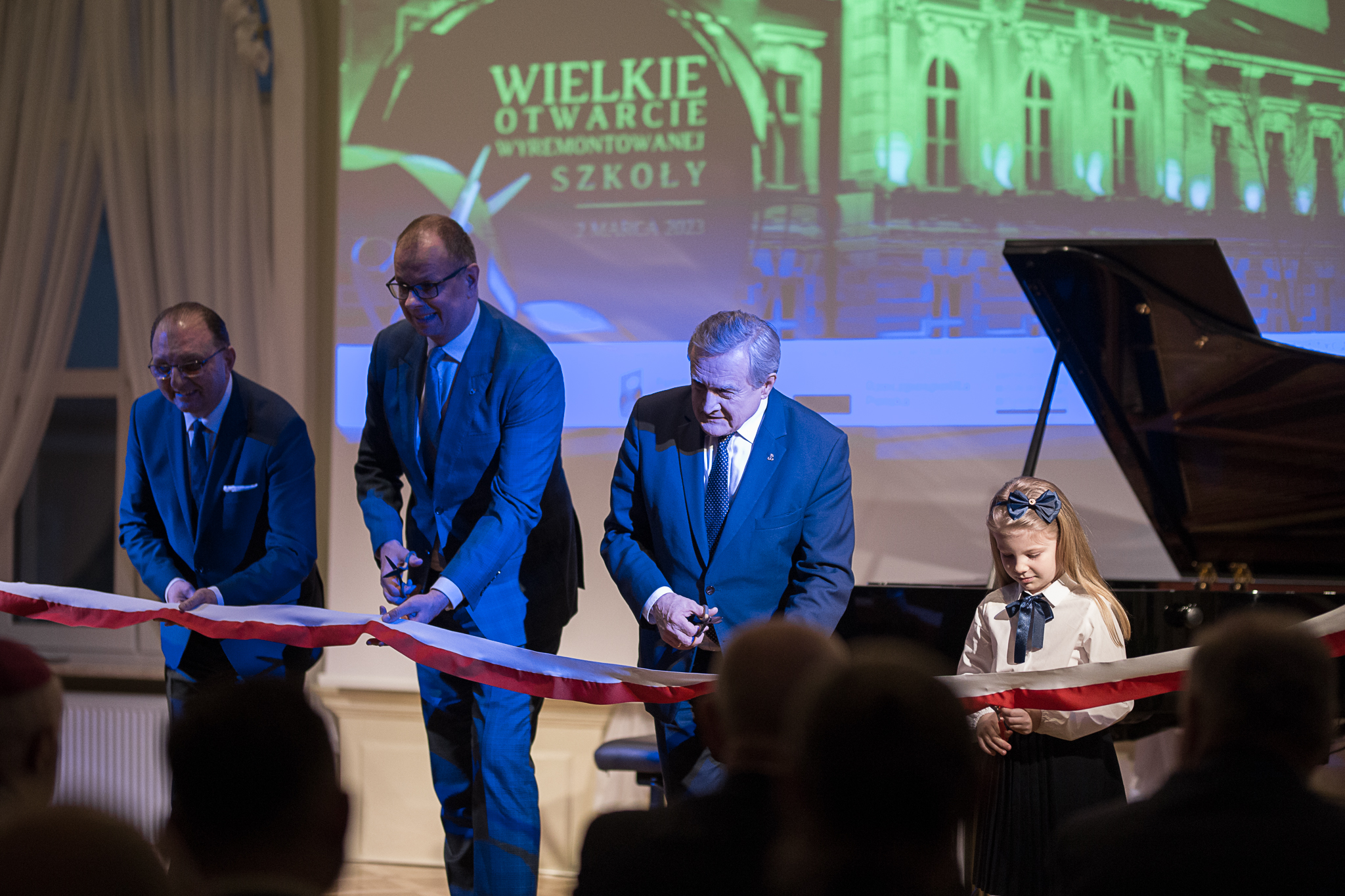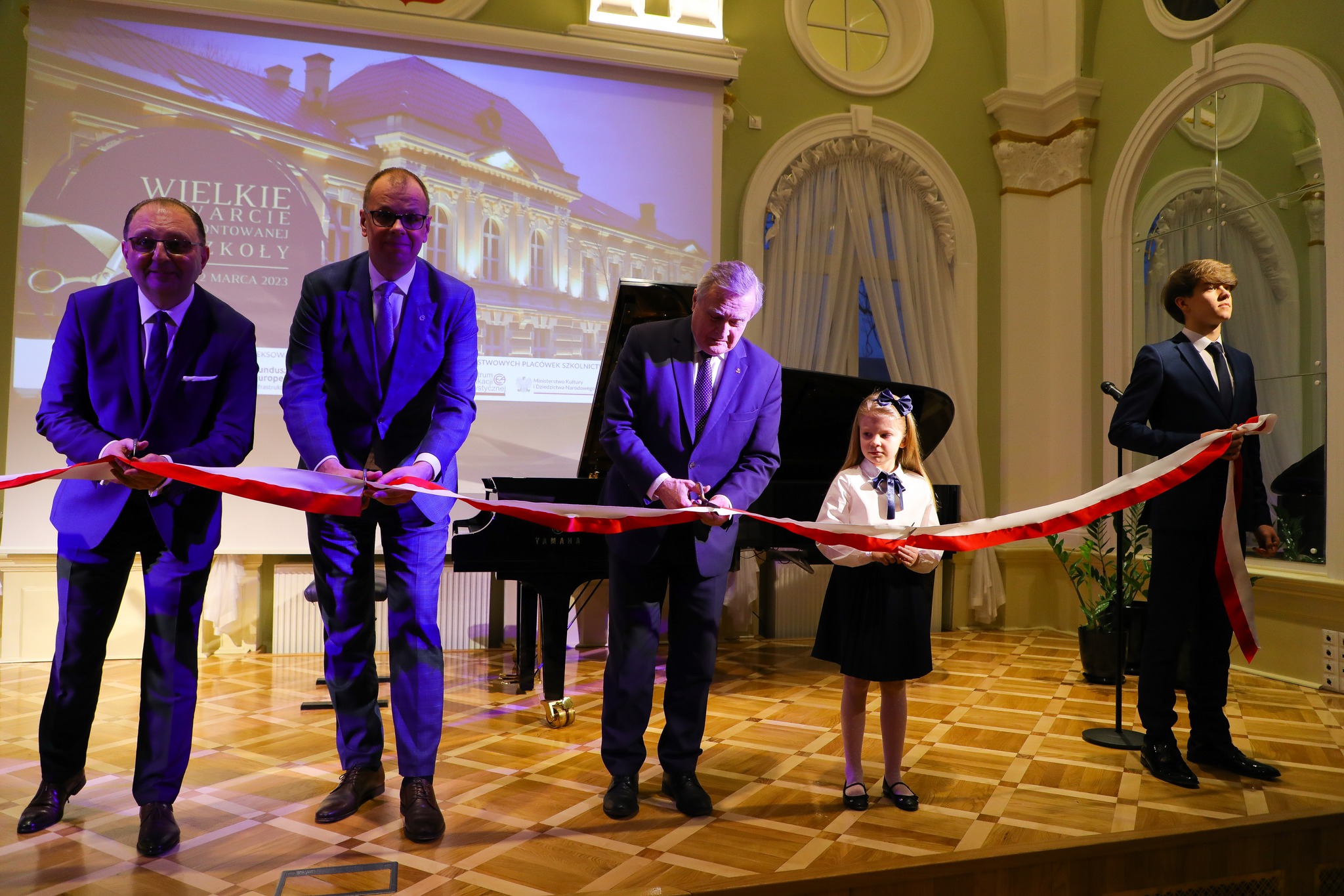 2 marca br., w obecności znamienitych gości - Wiceprezesa Rady Ministrów, Ministra Kultury i Dziedzictwa Narodowego prof. dr hab. Piotra Glińskiego, Prezydenta Miasta Wojciecha Bakuna, dyrektora Departamentu Szkolnictwa Artystycznego MKiDN oraz głównego wykonawcy, Prezesa firmy BIPV System Sp z o.o. Przemysława Bilewskiego i innych, oficjalnie i uroczyście otworzyliśmy naszą szkołę po przeprowadzonym remoncie.