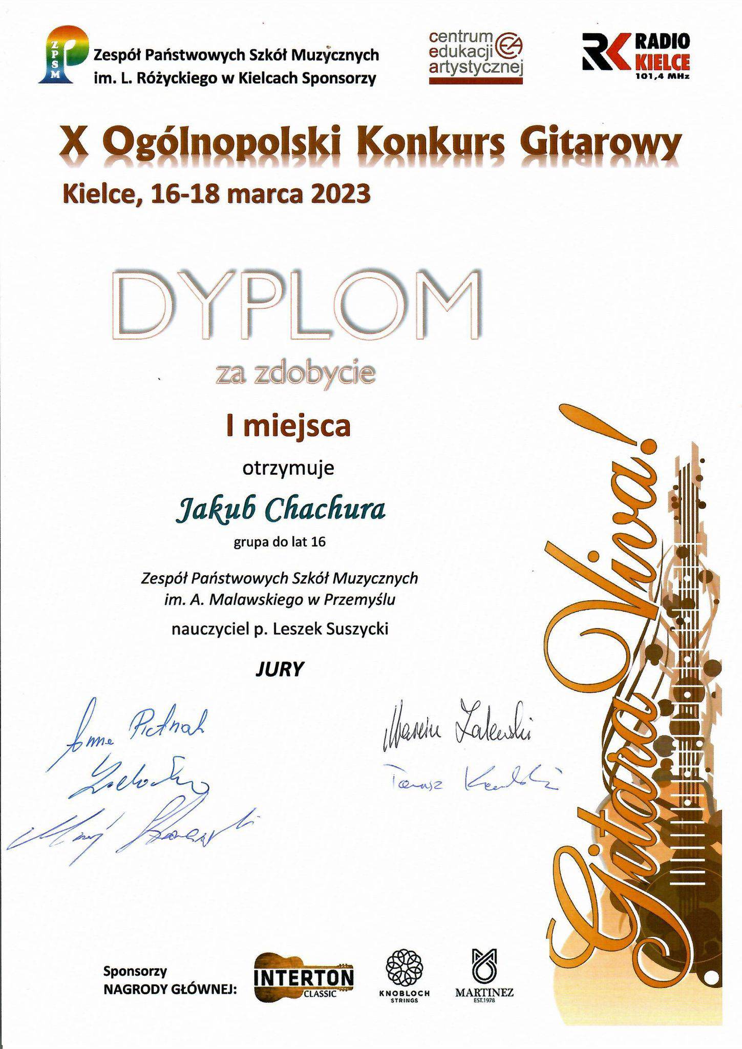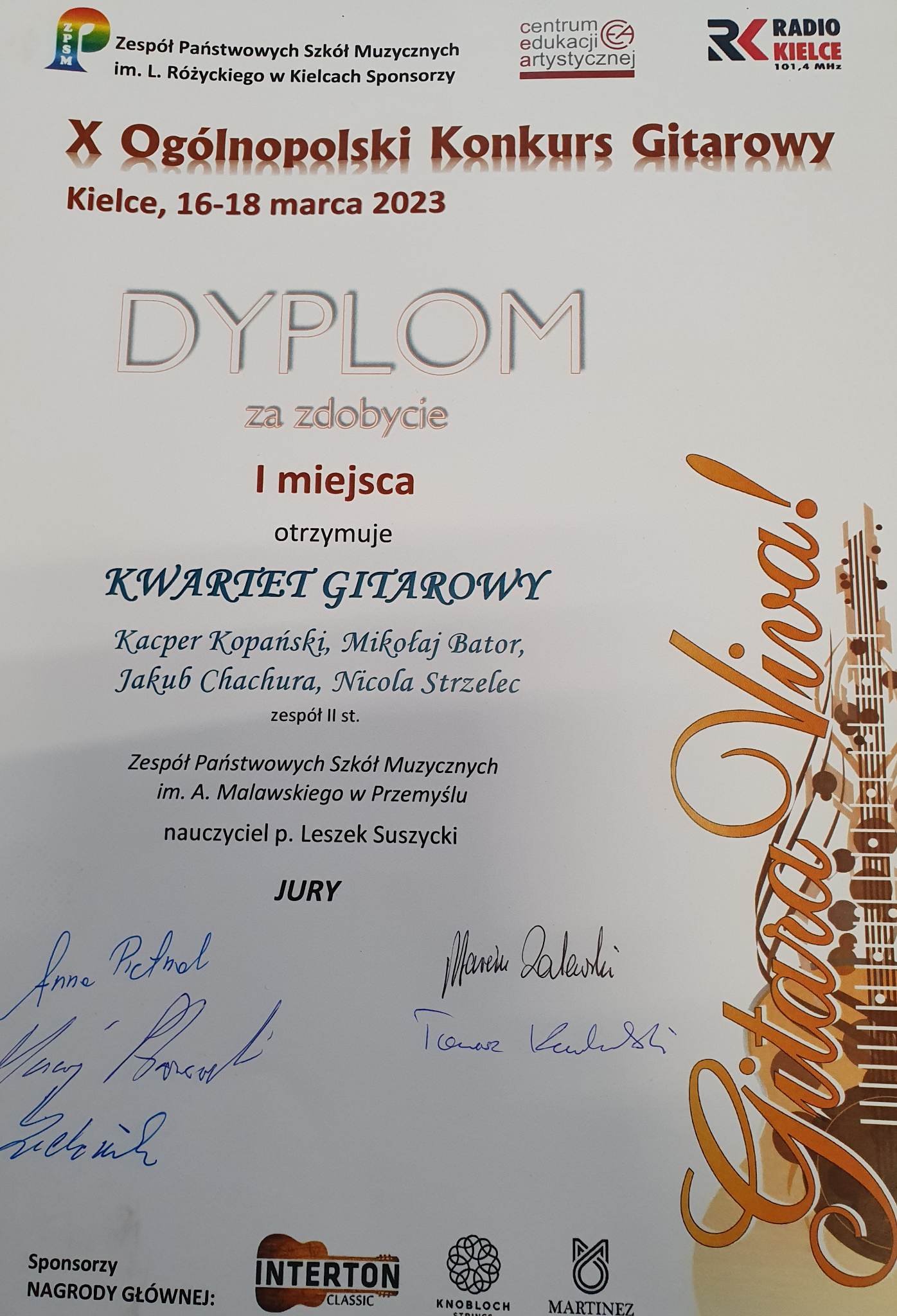 I miejsce w grupie solistów do lat 16 zajął Jakub Chachura, natomiast w grupie zespołów Szkół Muzycznych II stopnia I miejsce zdobył Kwartet Gitarowy w składzie: Kacper Kopański, Mikołaj Bator, Jakub Chachura i Nicola Strzelec.