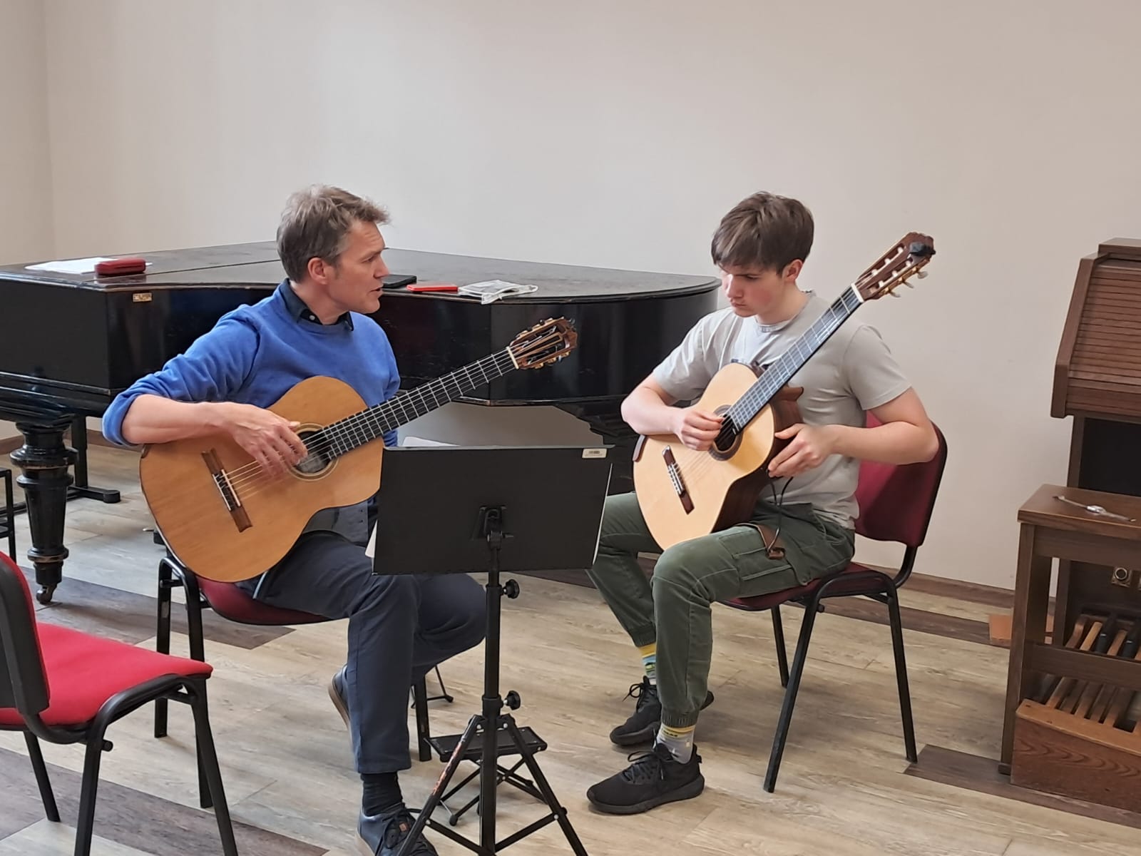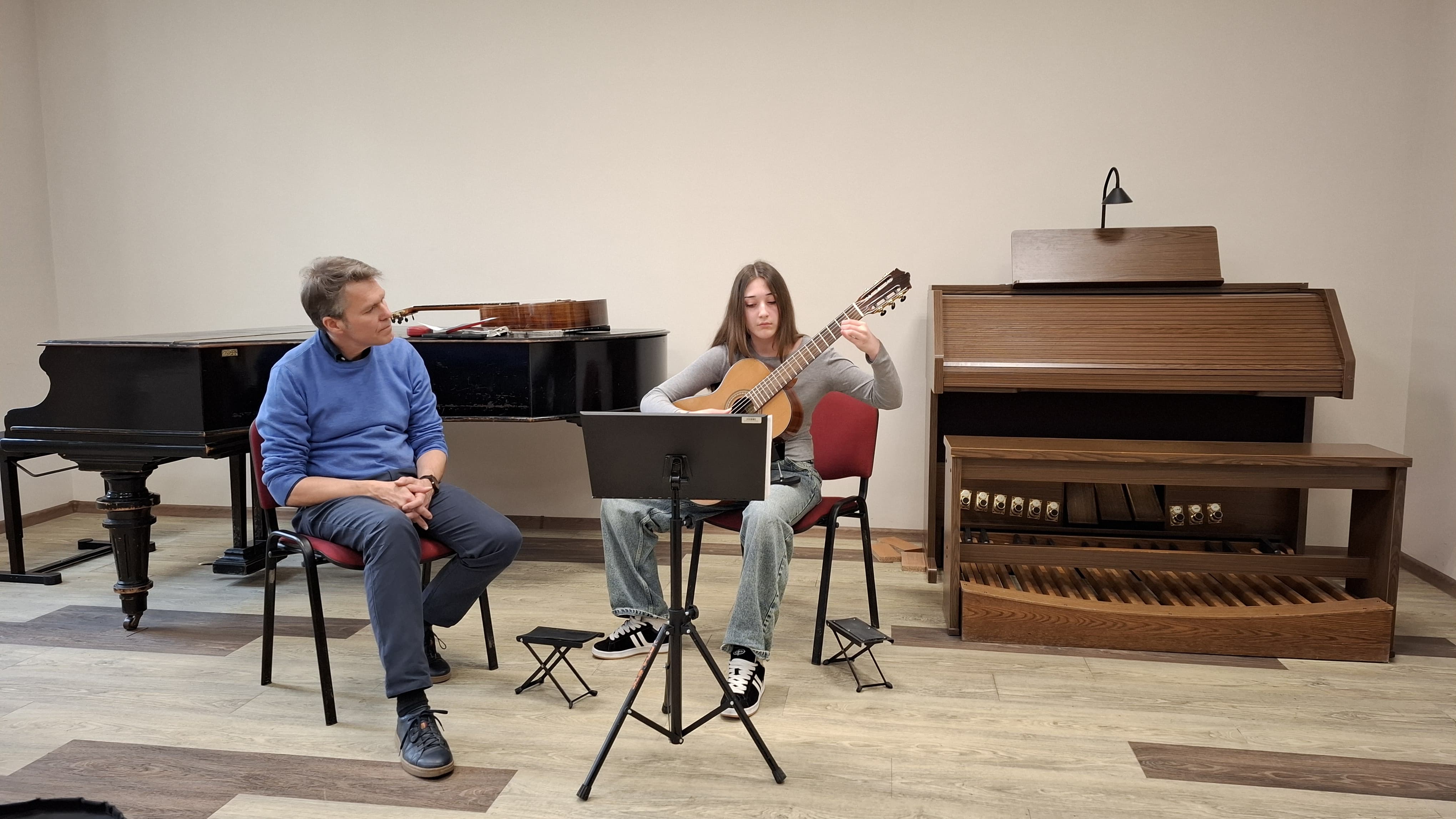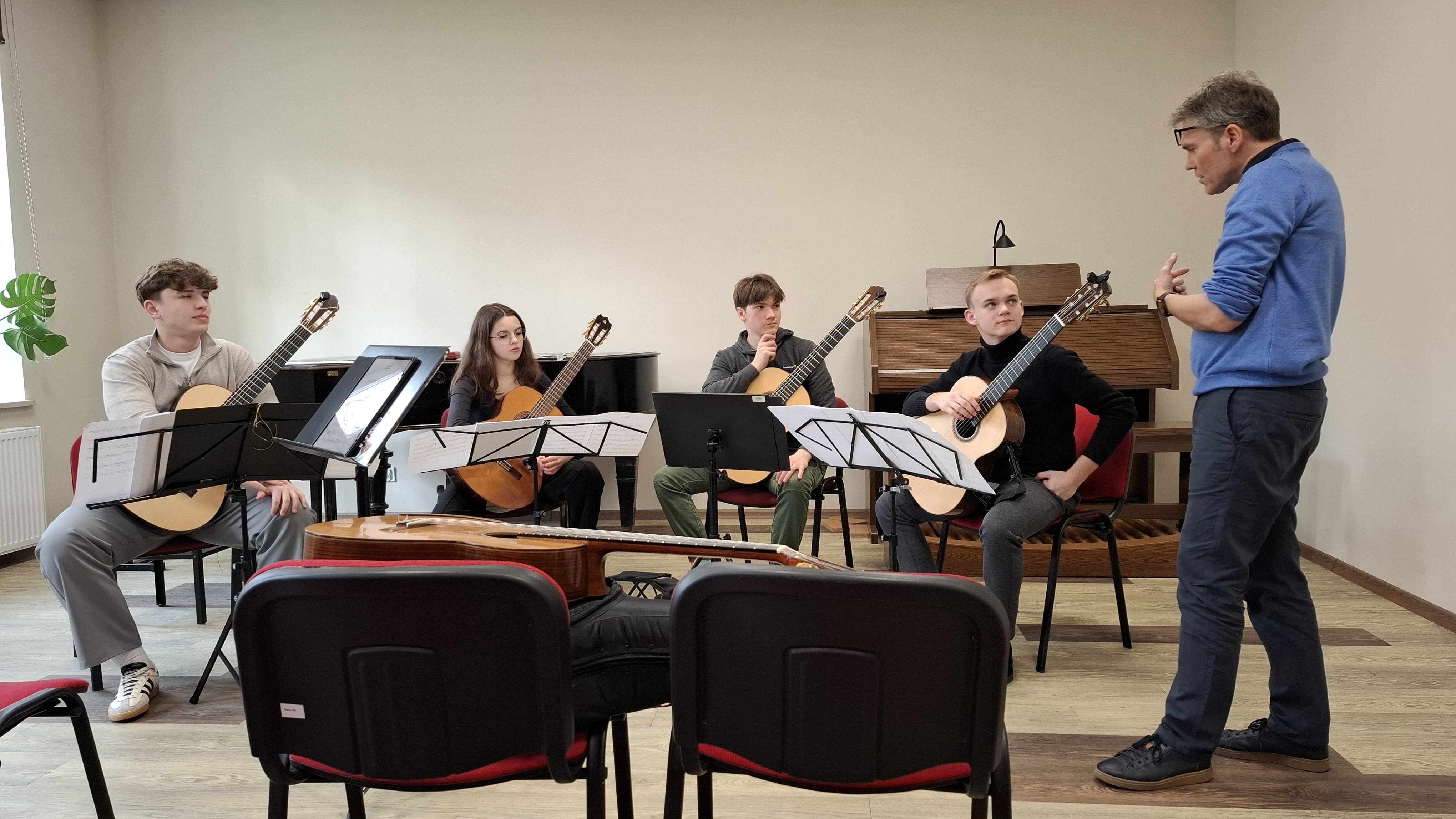 Dzięki cennym uwagom pana profesora uczniowie mogli na nowo odkryć możliwości brzmieniowe gitary oraz piękno utworów. Był to czas bardzo owocny, a otrzymane wskazówki z pewnością będą przez wszystkich wykorzystane w dalszej pracy.