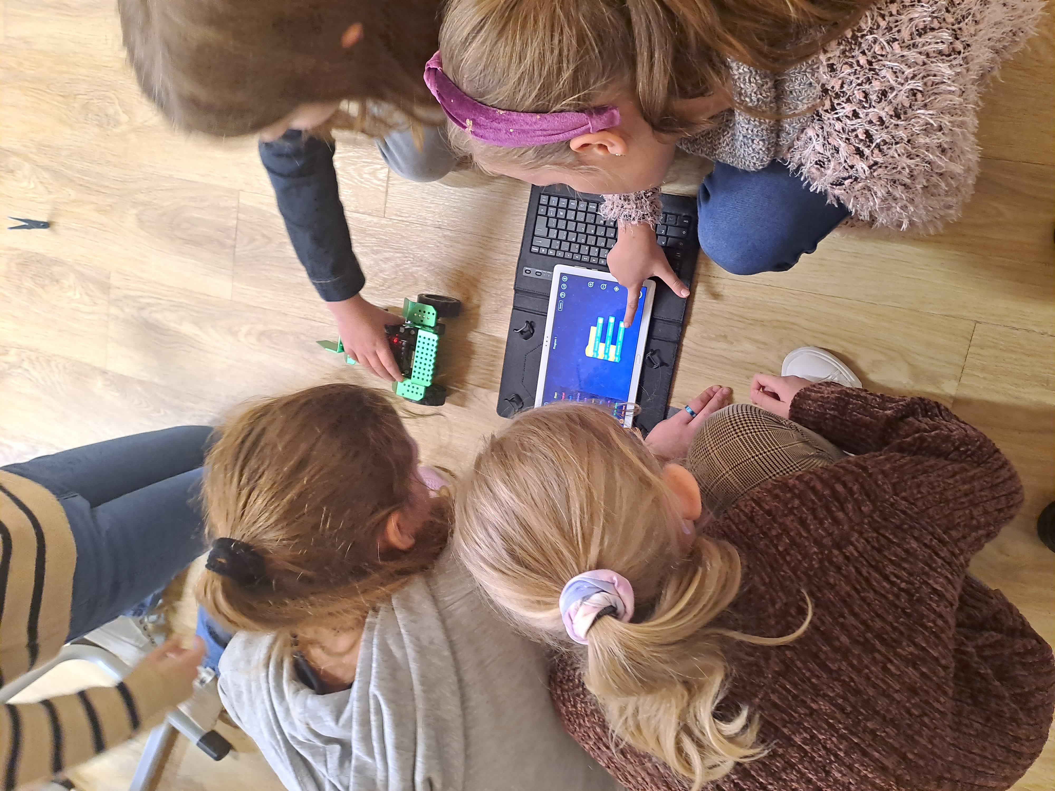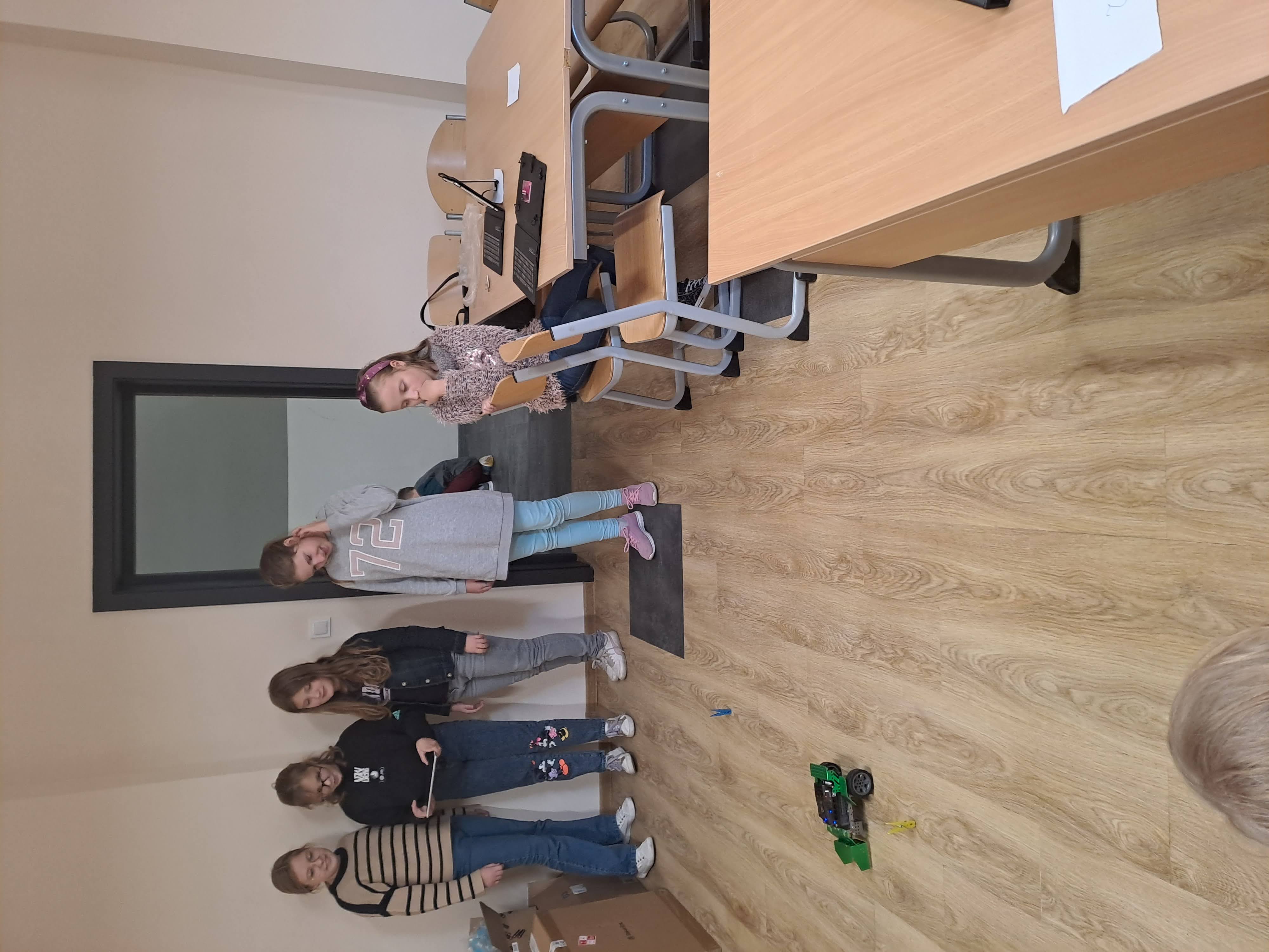 W listopadzie kontynuowaliśmy przygodę z programem #Laboratoria przyszłości. Młodsze klasy na zajęciach wykorzystywały roboty Qoopers. Korzystając z aplikacji Robobloq tworzyły pierwsze programy dla robotów. Stosując polecenia z grupy Ruch – poziom średniozaawansowany ćwiczyliśmy jazdę do przodu, do tyłu, skręt w prawo, skręt w lewo. Zmienialiśmy również prędkość ruchu poprzez pracę silników z określoną mocą.
