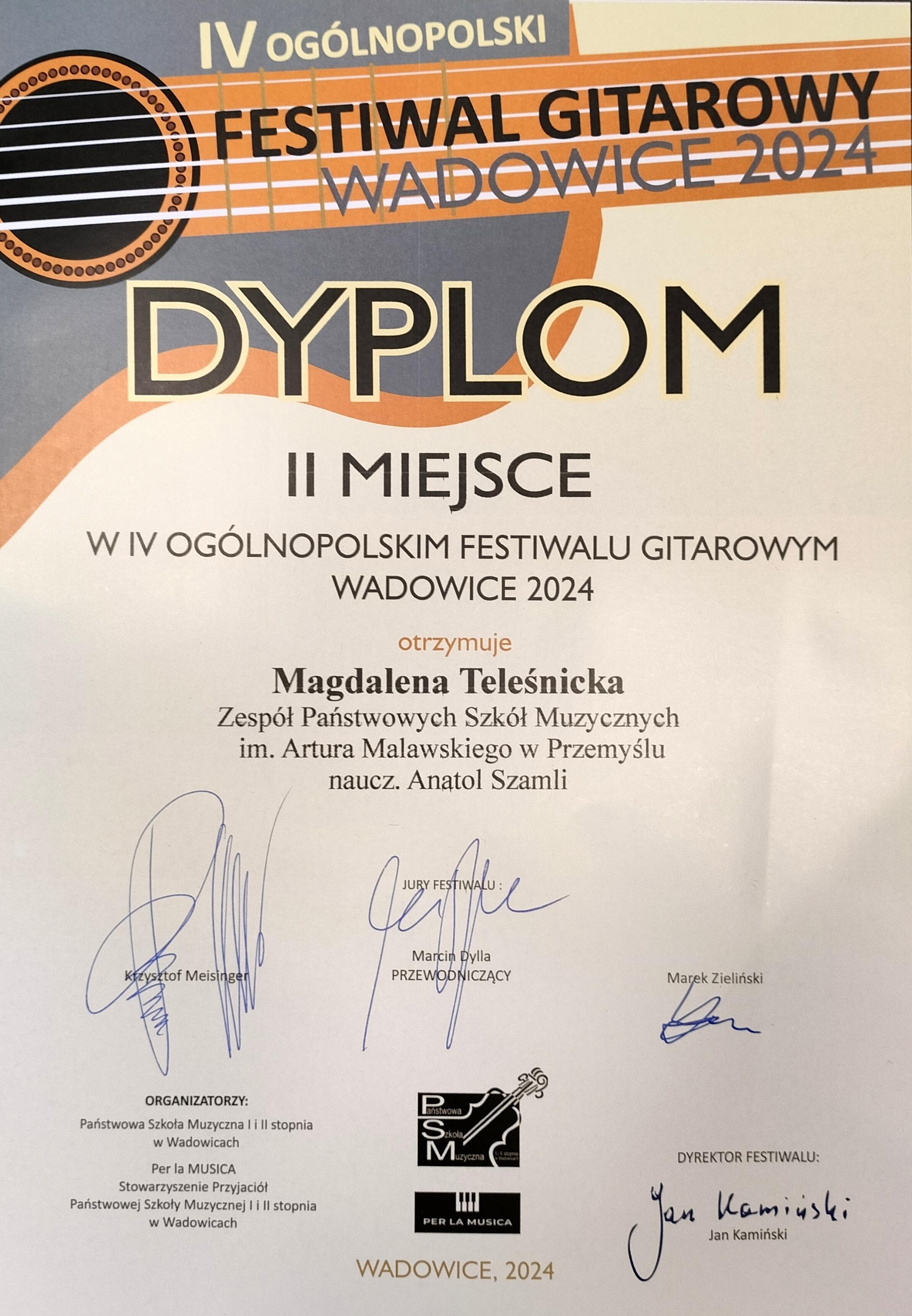 Sukces Młodych Gitarzystów w IV Ogólnopolskim Festiwalu Gitarowym w Wadowicach!