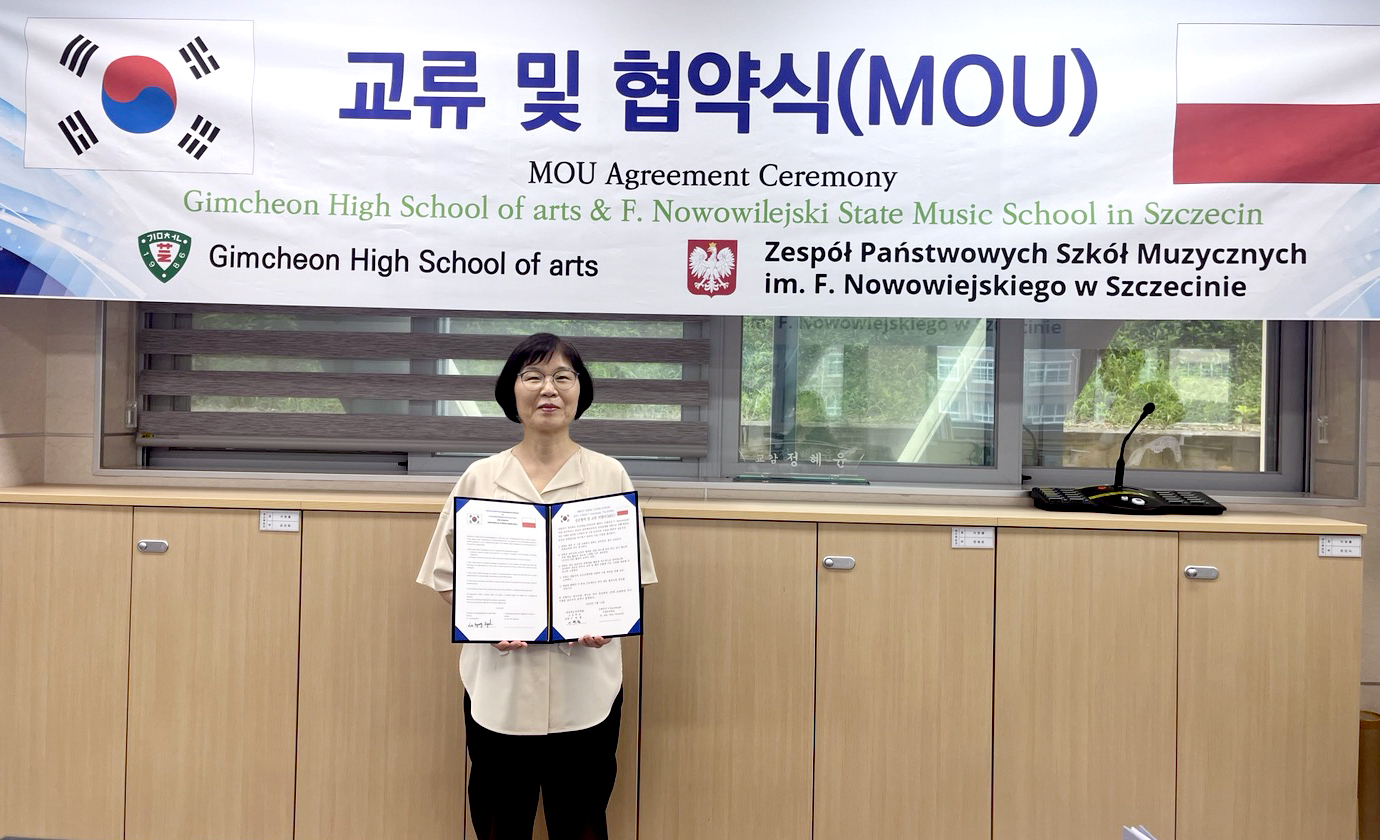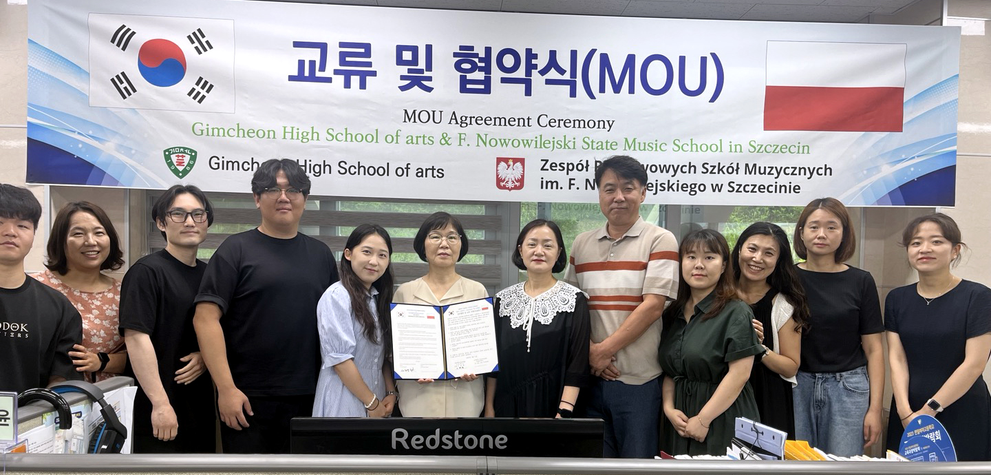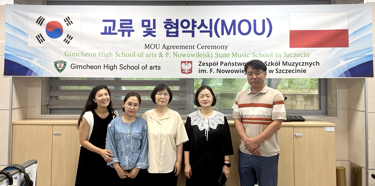 Gimcheon Art High School w Gyeongsangbuk-do w Korei Południowej i Zespół Państwowych Szkół Muzycznych im. F. Nowiejskiego w Szczecinie w Polsce postanawiają podpisać Memorandum o porozumieniu między dwiema szkołami, dla obopólnych korzyści poprzez przyjazną współpracę. Obaj sygnatariusze zgadzają się na następujące klauzule dotyczące wzajemnego rozwoju projektu wymiany artystycznej.: