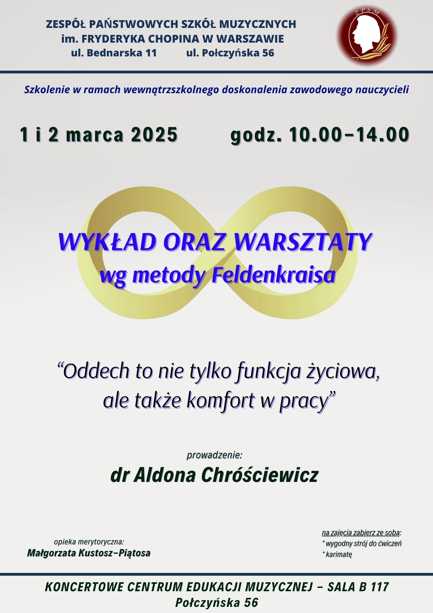 Sekcja Wokalno-Estradowa zaprasza nauczycieli i uczniów z klas śpiewu i instrumentów dętych na warsztaty wg metody Feldenkraisa pn.