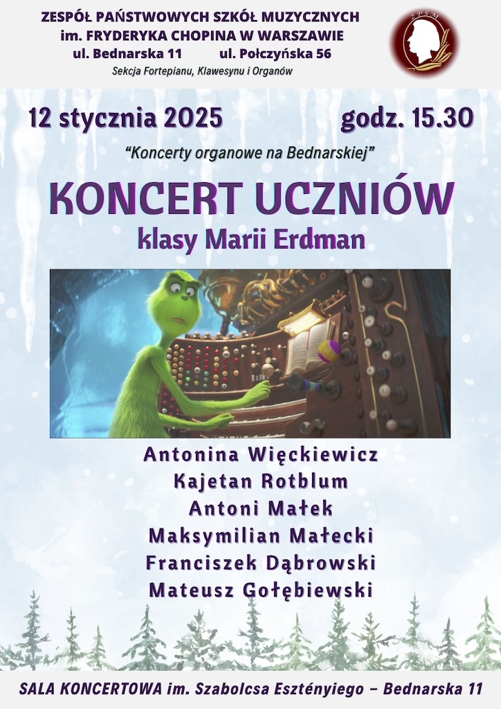 Afisz - 12.01.2025 r. - koncert organowy - uczniowie klasy Marii Erdman2025-01-12-konc-organowy-erdman.pdf 3.85MB
