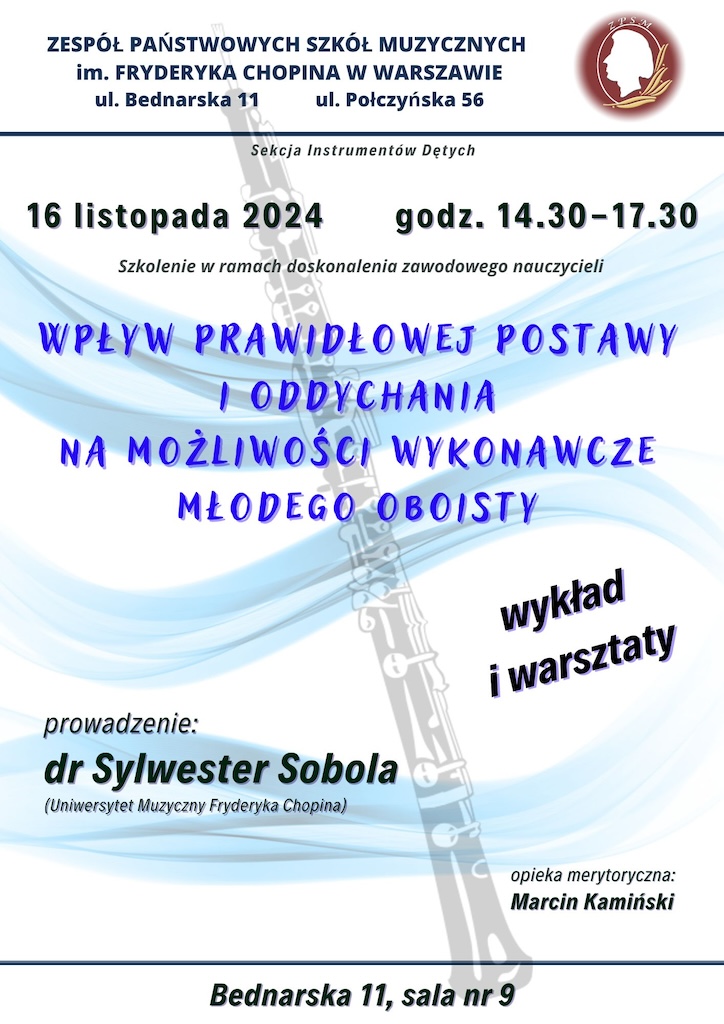 Warsztaty "Wpływ prawidłowej postawy i oddychania na możliwości wykonawcze młodego oboisty" poprowadzi