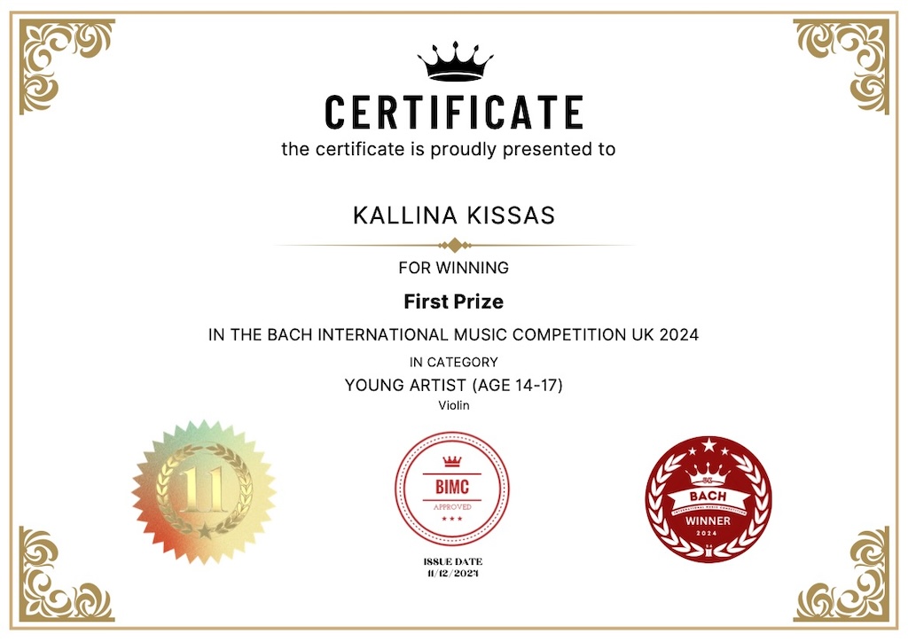 I miejsce - Bach International Music Competition UK 2024