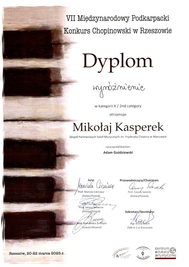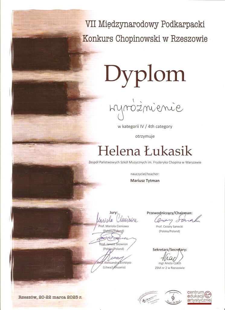 Wyróżnienie - VII Międzynarodowy Podkarpacki Konkurs Chopinowski