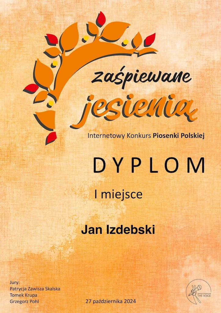 I miejsce - X Internetowy Konkurs Piosenki Polskiej „Zaśpiewane jesienią”