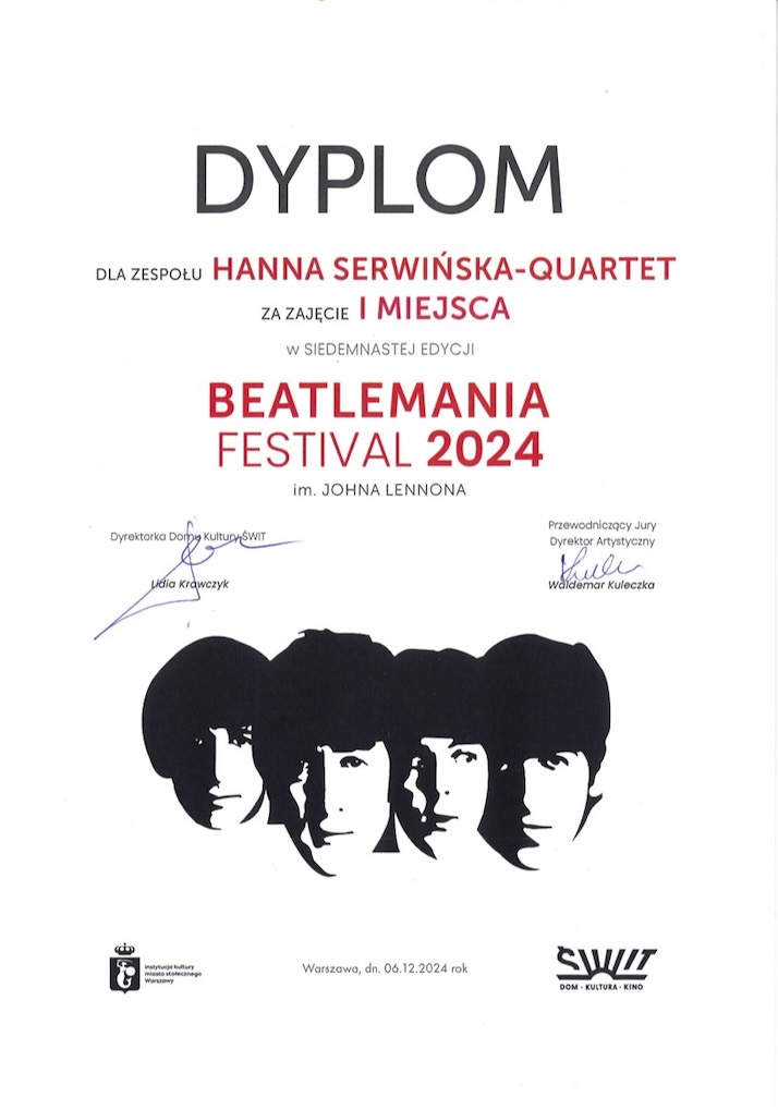 I miejsce dla zespołu Hanna Serwińska Quartet - Beatlemania Festival 2024