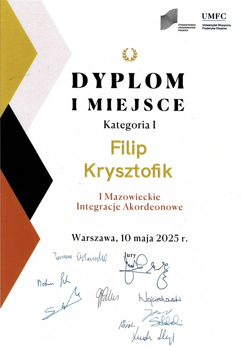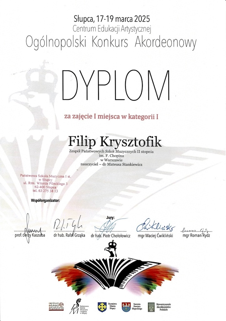 I miejsce - Ogólnopolski Konkurs Akordeonowy