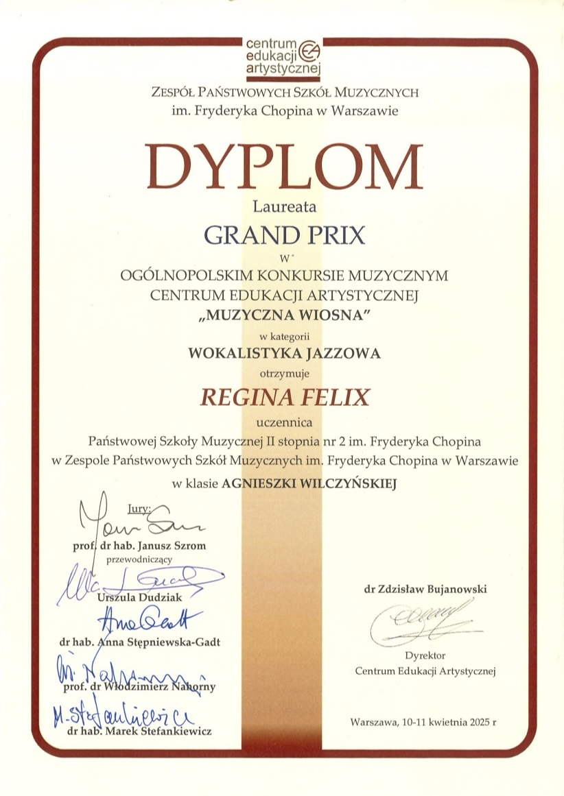 Grand Prix - Ogólnopolski Konkurs Muzyczny Centrum Edukacji Artystycznej "Muzyczna Wiosna"