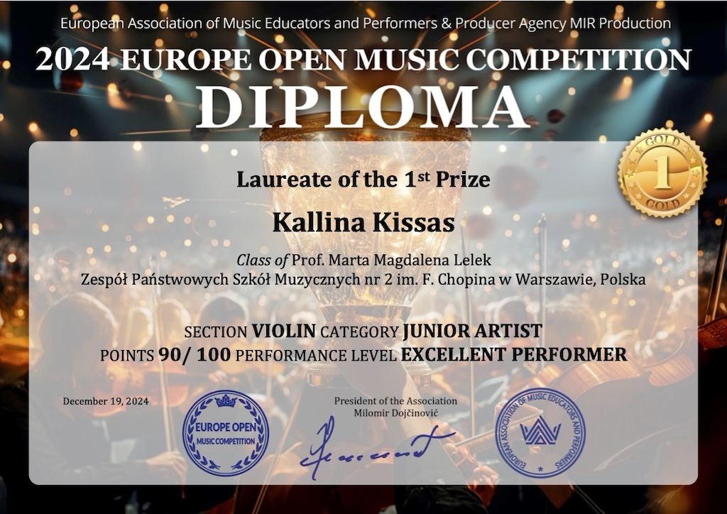 I miejsce - Europe Open Online Music Competition