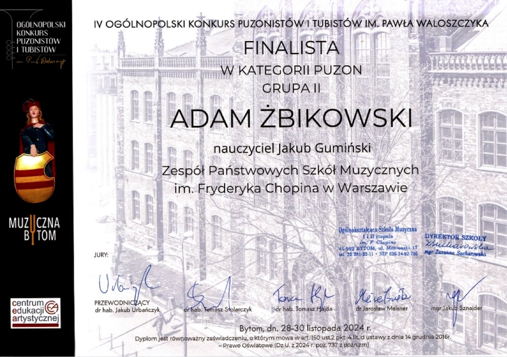 FINALISTA - IV Ogólnopolski Konkurs Puzonistów i Tubistów im. Pawła Waloszczyka