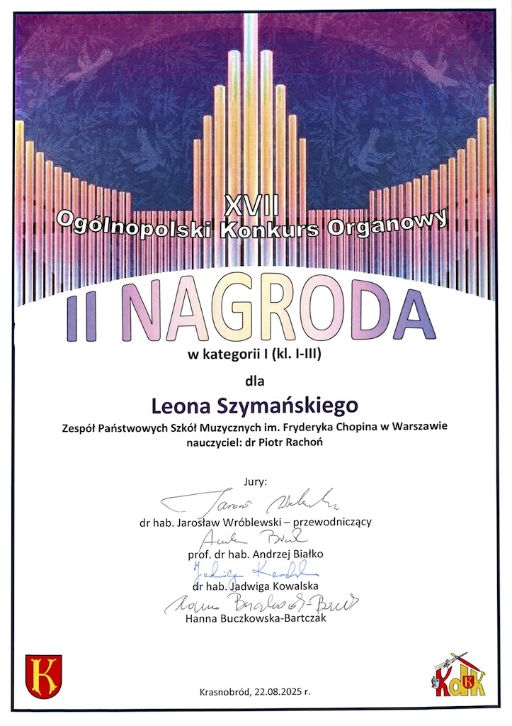 II Nagroda na Ogólnopolskim Konkursie Organowym